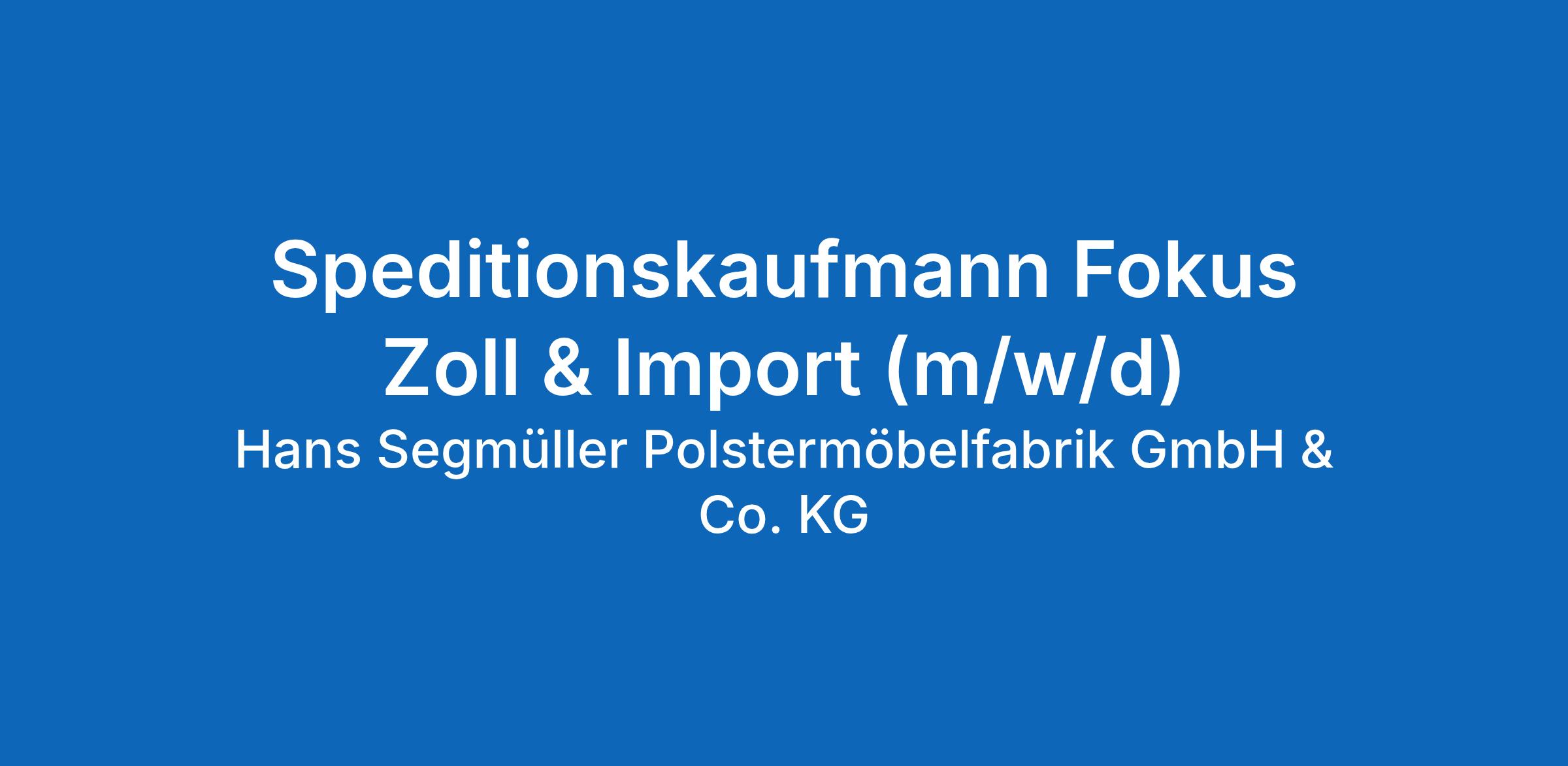 Speditionskaufmann Fokus Zoll & Import (m/w/d)