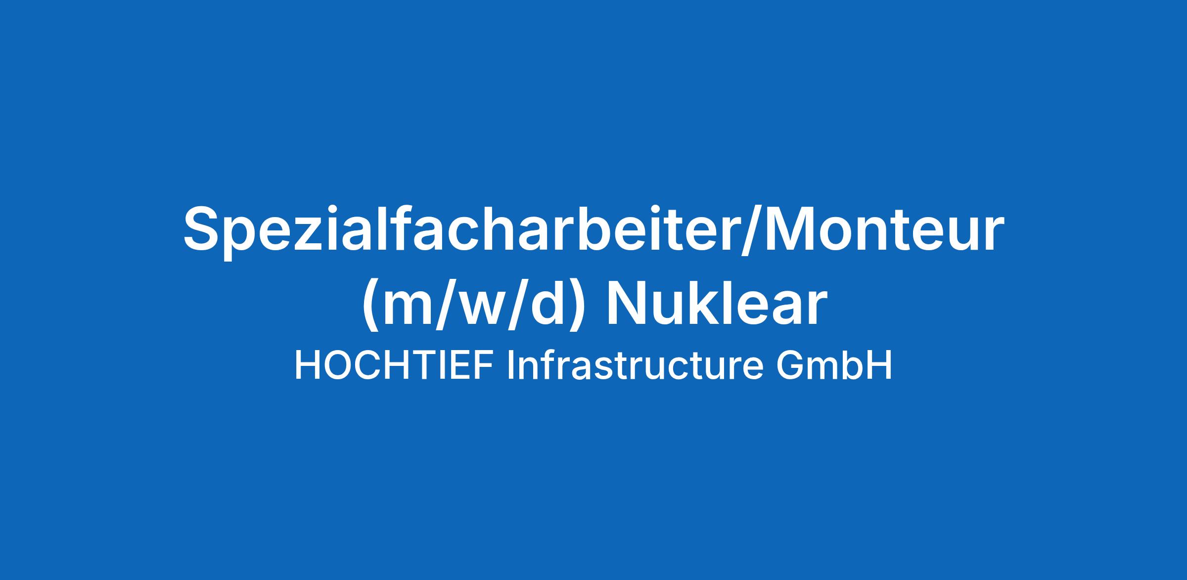 Spezialfacharbeiter/Monteur (m/w/d) Nuklear