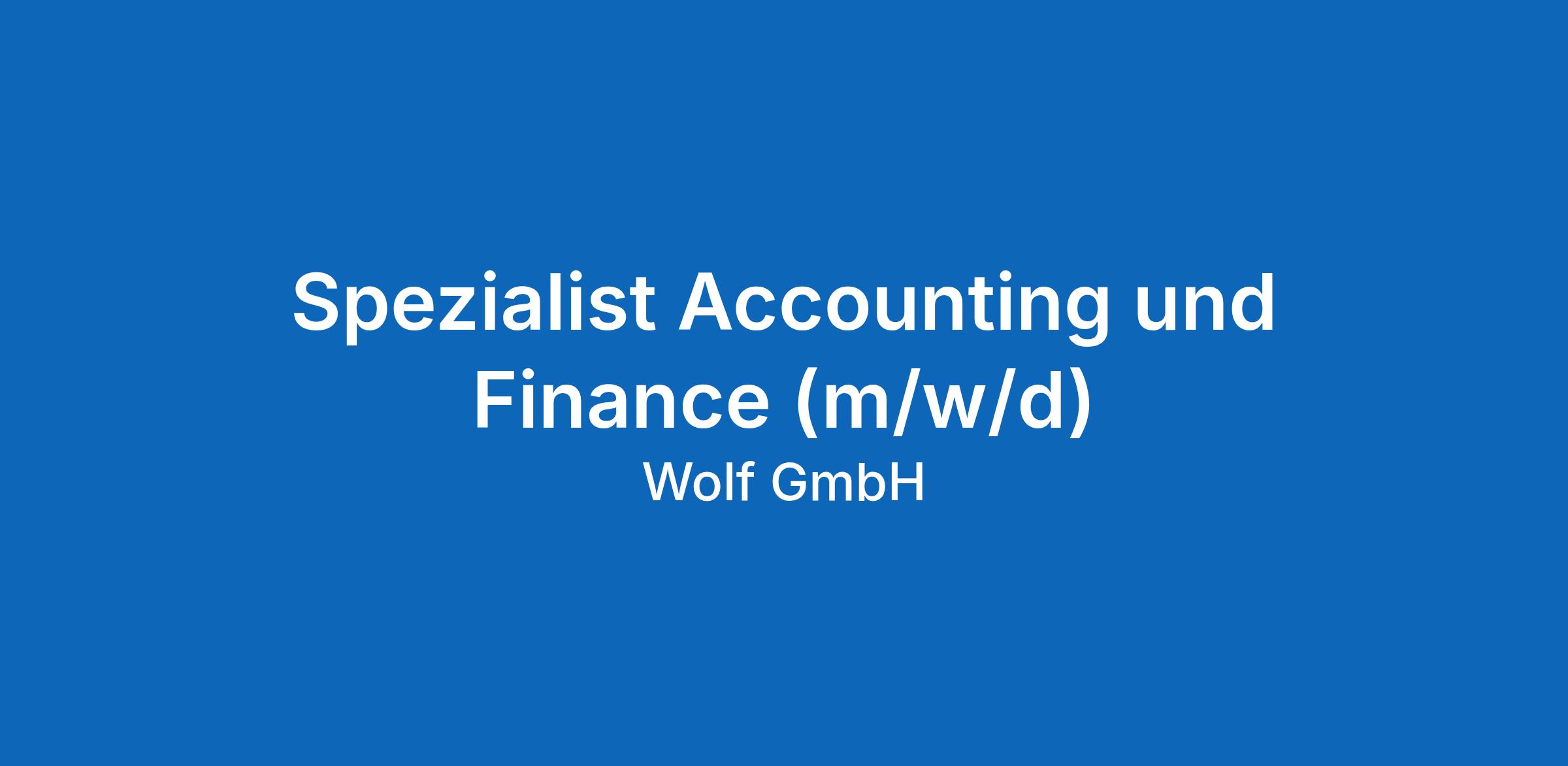 Spezialist Accounting und Finance (m/w/d)