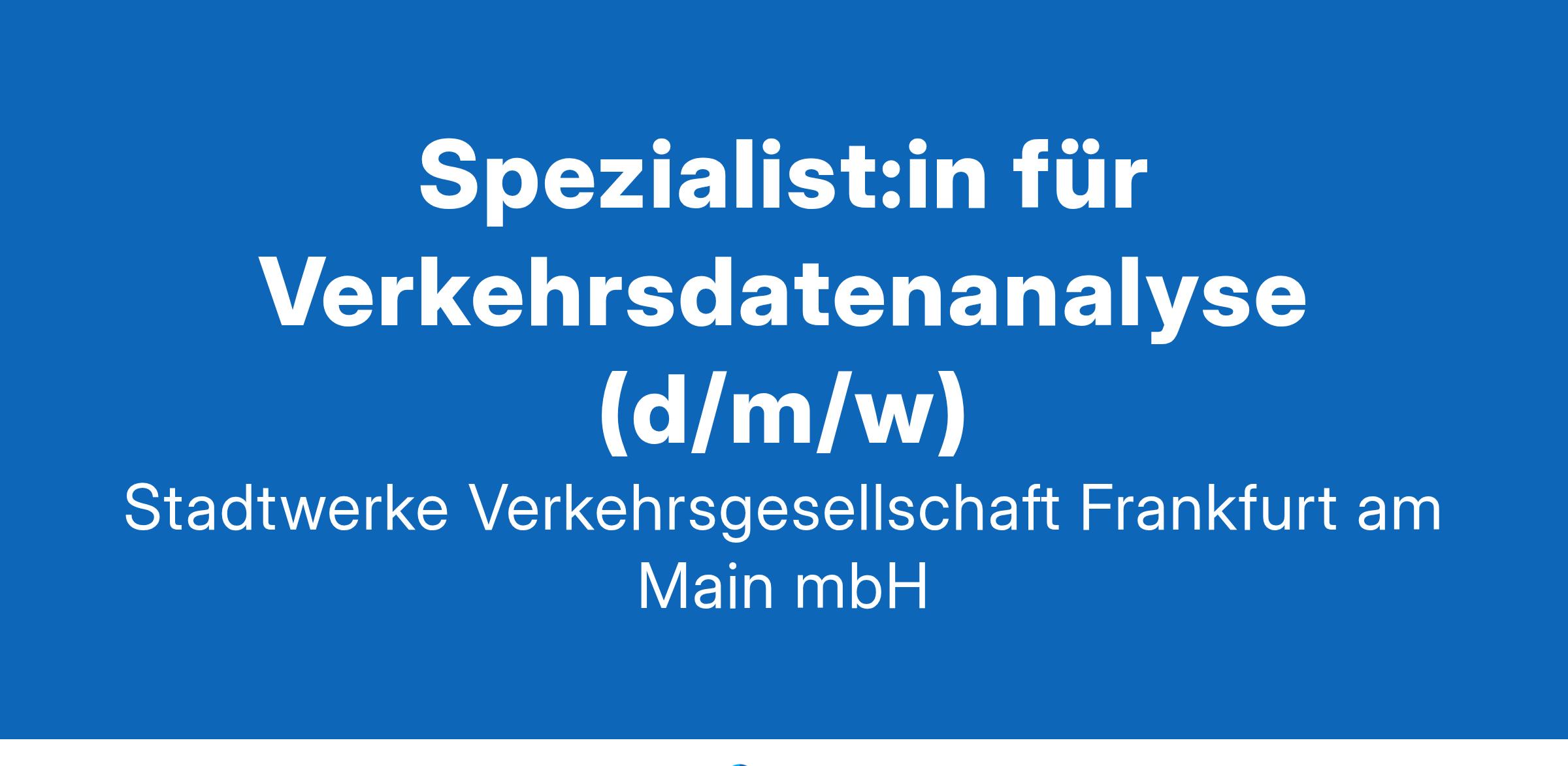 Spezialist:in für Verkehrsdatenanalyse (d/m/w) WIR BEWEGEN MENSCHEN Als Verkehrsdienstleisterin arbeiten wir an der Zukunft Frankfurts – als Arbeitgeberin kümmern wir uns mit Ihnen um Ihre Zukunft. Darum leben wir in unserem Unternehmen Offenheit, Toleranz und Gleichberechtigung und unterstützen Sie mit vielfältigen Benefits. Wir glauben: Der Nahverkehr ist die Zukunft der Mobilität. Deswegen entwickeln wir mit Leidenschaft neue Ideen und Konzepte. Arbeiten Sie mit uns an der Mobilität Frankfurts! IHRE AUFGABEN Identifizierung und Entwicklung von Anwendungsfällen Aufbau, Pflege und Dokumentation der zugehörigen Datenbasis Schaffung der erforderlichen Schnittstellen Entwicklung und kontinuierliche Bereitstellung von Analysen, Dienstleistungen, Prognosen, Kennzahlen und Dashboards zum Verkehr in Frankfurt Identifizierung, Kontaktanbahnung und -pflege von Adressaten für die erstellten Analysen Überführung der Datenplattform von der Projektumgebung in den Regelbetrieb Unterstützung bei der Ableitung von Strategien zur Verkehrsbeeinflussung Datenanalyse zum Innovationsprojekt DTC-System (RAM Betrachtung) IHR PROFIL Abgeschlossenes Studium oder vergleichbare Berufserfahrung in den Bereichen MINT, Verkehrswissenschaften, urbane Mobilität, Verkehrsmanagement oder ÖPNV Erfahrung in der Analyse großer, inhomogener Datenbestände Kenntnisse in der Programmierung relationaler Datenbanken, Visualisierungssoftware und der erforderlichen Schnittstellen Ausgeprägte Kommunikations-, Team- und Konfliktfähigkeit sowie analytisches, konzeptionelles und interdisziplinäres Denken Sicheres, verbindliches Auftreten und Belastbarkeit Sehr gute Deutschkenntnisse in Wort und Schrift sowie Englischkenntnisse UNSER ANGEBOT Wir bieten Ihnen einen Arbeitsvertrag mit tariflicher Vergütung nach TV-N Hessen sowie weitere attraktive Zusatzleistungen: Freuen Sie sich auf eine Jahressonderzahlung, eine Leistungsprämie, unsere betriebliche Altersvorsorge (Zusatzversorgungskasse der Stadt Frankfurt am Main) – und (selbstverständlich) ein kostenfreies Jobticket. Neben der tarifvertraglichen und kulturell gelebten 39-Stunden-Woche erwartet Sie ein attraktives Gleitzeitmodell. Je nach Einsatzbereich können Sie zudem in Teilzeit oder tageweise mobil von zu Hause aus arbeiten. Auch die Erholung darf natürlich nicht zu kurz kommen: So haben Sie Anspruch auf 30 Tage Urlaub im Kalenderjahr sowie zwei weitere freie Tage an Weihnachten und Silvester. Außerdem stehen Ihnen bis zu 12 zusätzliche Gleitzeittage im Jahr zur Verfügung! Für die Freizeitgestaltung abseits der Arbeit sorgen regelmäßige Verlosungen von Tickets für Kultur- und Sportveranstaltungen. Mit unserer Version einer Mini-Volkshochschule, unserer VGF-Akademie, erwarten Sie weitere persönliche und fachliche Entwicklungsmöglichkeiten – getreu dem Motto: Sie investieren Ihre Zeit, wir übernehmen die Kosten! Zudem unterstützen wir die Vereinbarkeit von Beruf und Privatleben. Wir sind seit 2016 mit dem Zertifikat des audit berufundfamilie ausgezeichnet. BRINGEN SIE IHRE STADT INS ROLLEN! Sie haben weitere Fragen? Melden Sie sich gerne! Ansprechperson: Denis Bisinger Mobil: 0151 23167397