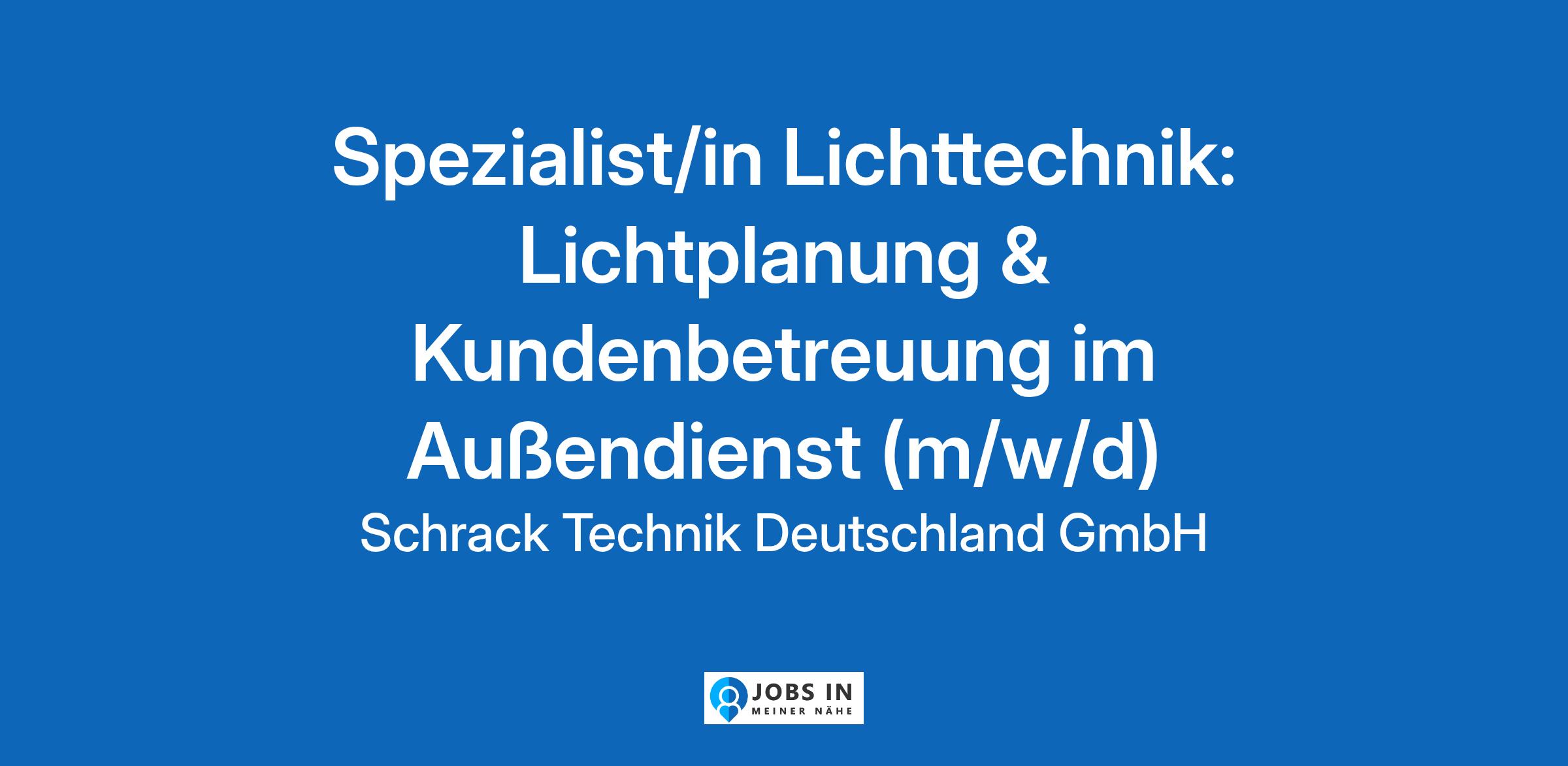 Spezialist/in Lichttechnik: Lichtplanung & Kundenbetreuung im Außendienst (m/w/d) Standort: Bayern, DE, Anstellung: Vollzeit Schrack Technik ist eines der führenden österreichischen Unternehmen im B2B Vertrieb innovativer Produkte aus den Bereichen Elektrotechnik, Netzwerktechnik, Gebäude, Anlage... Beleuchtungsplanung;EDV;kontaktfreudig;Ausschreibung;Berechnung;AutoCAD;Beleuchtungstechnik;Kundendienst;Ansprechpartner;Relux;Außendienst;Eigenverantwortung;Planung;Kundenorientiert;Kommunikation;DIALux;Projektkompetenz Original Stellenanzeige auf StepStone.de – Jetzt Jobagent bei StepStone einrichten und Traumjob finden! https://bit.ly/2KOagYD Mehr Informationen zu Arbeitgebern, Gehaltsdaten und Karrieretipps finden Sie auf StepStone.de
