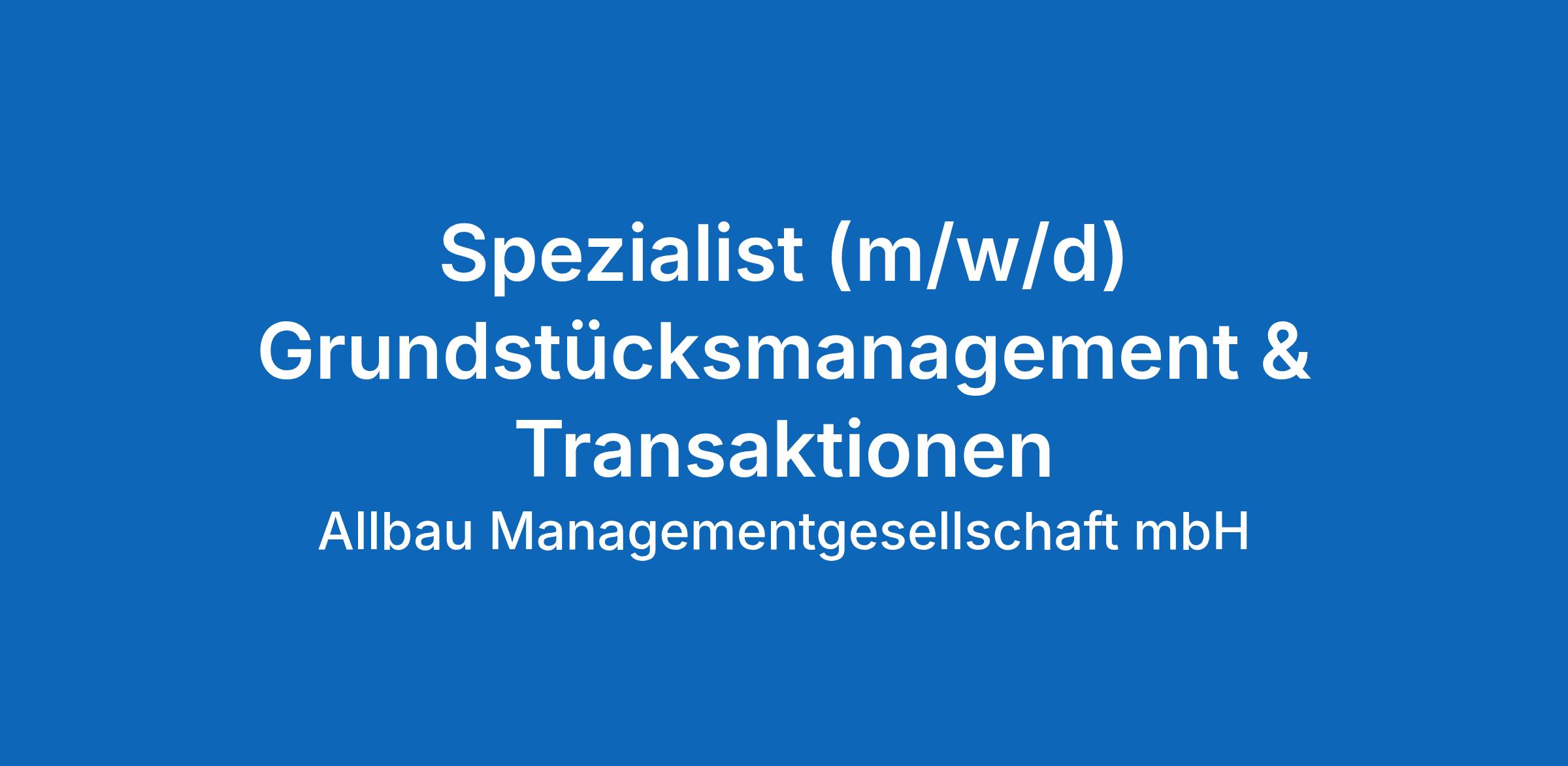 Spezialist (m/w/d) Grundstücksmanagement & Transaktionen