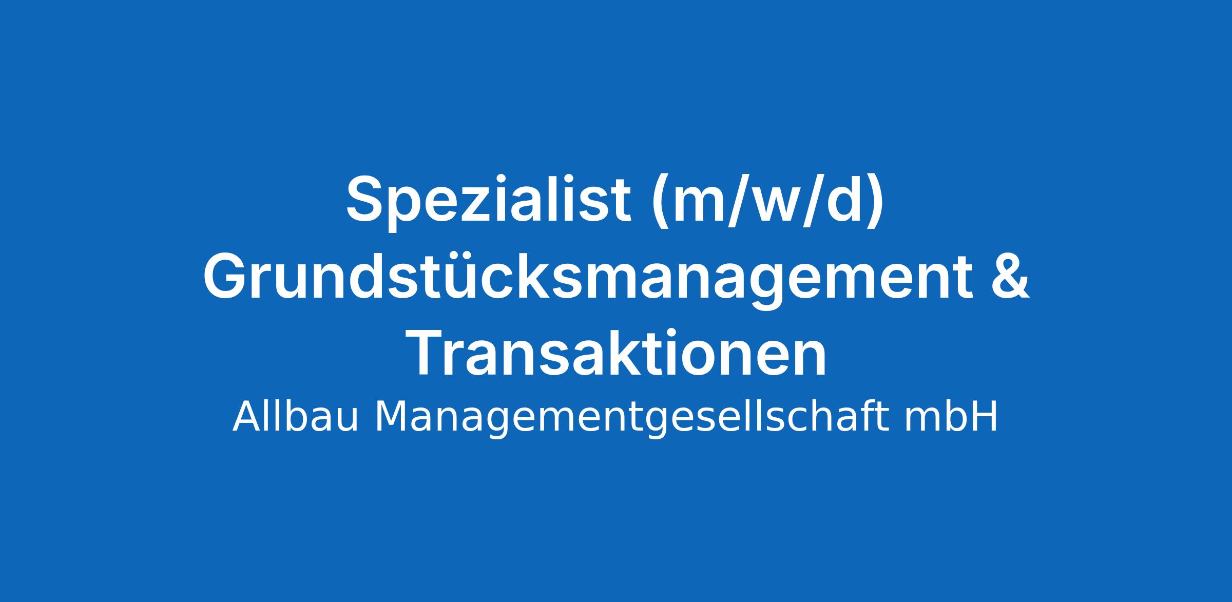 Spezialist (m/w/d) Grundstücksmanagement & Transaktionen