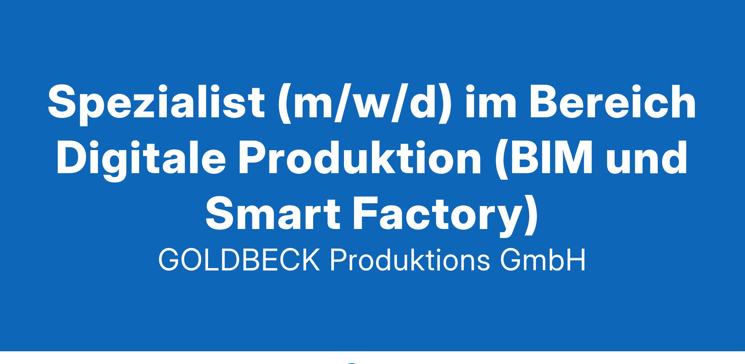 Job-ID: 9404AufgabenMit dem Fokus auf Digitalisierung verbindest Du den 3D-modellbasierten (BIM) Workflow mit der Digitalen Produktion (Smart Factory) und gestaltest aktiv die Zukunft bei GOLDBECK.
