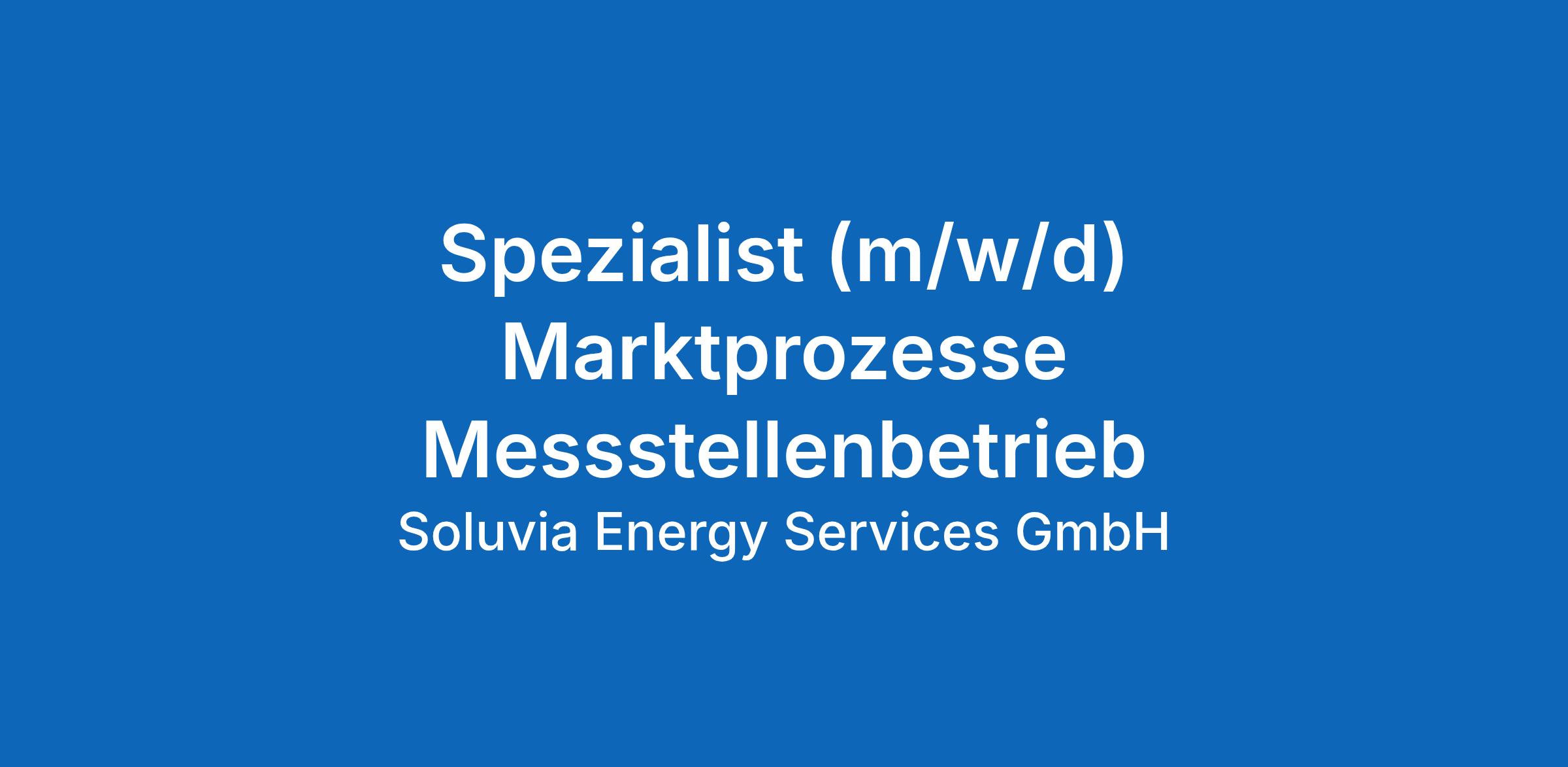 Spezialist (m/w/d) Marktprozesse Messstellenbetrieb