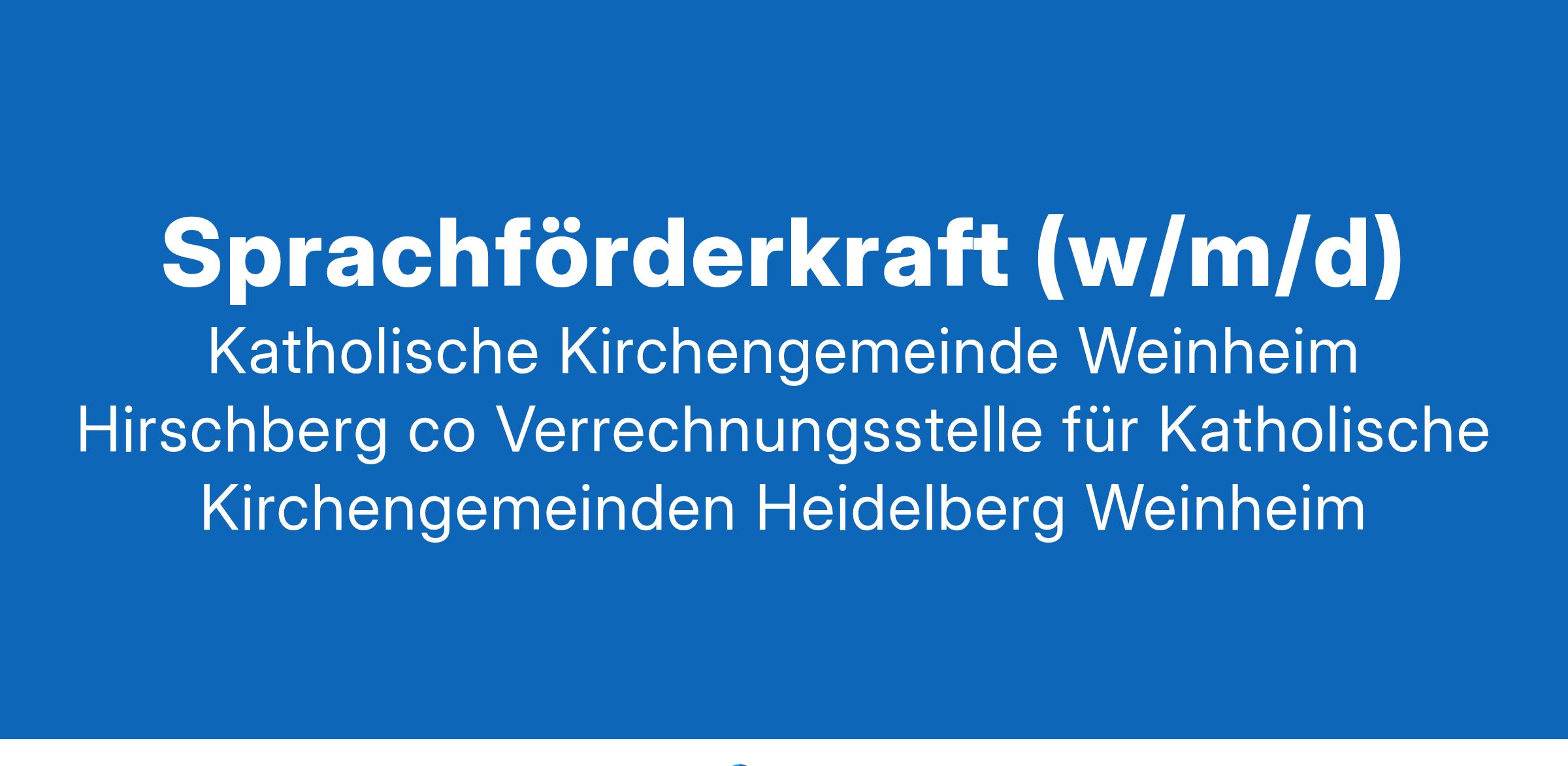 Die röm.-kath. Kirchengemeinde Hemsbach sucht für ihren Kindergarten St. Laurentius in Hemsbach ab sofort eine Sprachförderkraft (w/m/d) zunächst befristet bis zum 31.08.2025 in Teilzeit mit 6 bis 12 Wochenstunden Der Kindergarten St. Laurentius ist eine dreigruppige Einrichtung für Kinder im Alter von zwei Jahren bis zum Schuleintritt. Die Sprachförderung findet im Rahmen des Sprachförderprogramms „Kolibri“ für Kinder mit zusätzlichem Sprachförderbedarf statt. Wir wünschen uns von Ihnen: Erfahrungen im Bereich der gezielten Sprachförderung von Kindern in Kleingruppen Beobachtung und Dokumentation der kindlichen Entwicklungsprozesse Vertrauensvolle Zusammenarbeit mit Eltern und den pädagogischen Fachkräften eine Ausbildung als pädagogische Fachkraft nach § 7 KiTaG wäre wünschenswert Identifikation mit den Zielen und Werten der katholischen Kirche Wir bieten Ihnen an: einen interessanten und vielseitigen Arbeitsplatz geregelte Verfügungszeiten zur Vor- und Nachbereitung Förderung der beruflichen Fort- und Weiterbildung sowie fachliche Begleitung eine attraktive betriebliche Altersversorgung eine leistungsgerechte Bezahlung angelehnt an den Tarifvertrag für Sozial- und Erziehungsdienst (TVöD SuE) inkl. Jahressonderzahlungen, tarifliche Zulagen, Kinderzulage und vermögenswirksame Leistungen Zuschuss zum Deutschland-Ticket-Job Für Ihre Fragen und weitere Auskünfte steht Ihnen die Kindergartenleitung Frau Braasch, Telefon 06201/496513 gerne zur Verfügung. Wir freuen uns auf Ihre aussagekräftige Bewerbung. Diese senden Sie bitte an: Katholischer Kindergarten St. Laurentius Gartenstraße 1a • 69502 Hemsbach kiga.st-laurentius@bachgemeinden.de