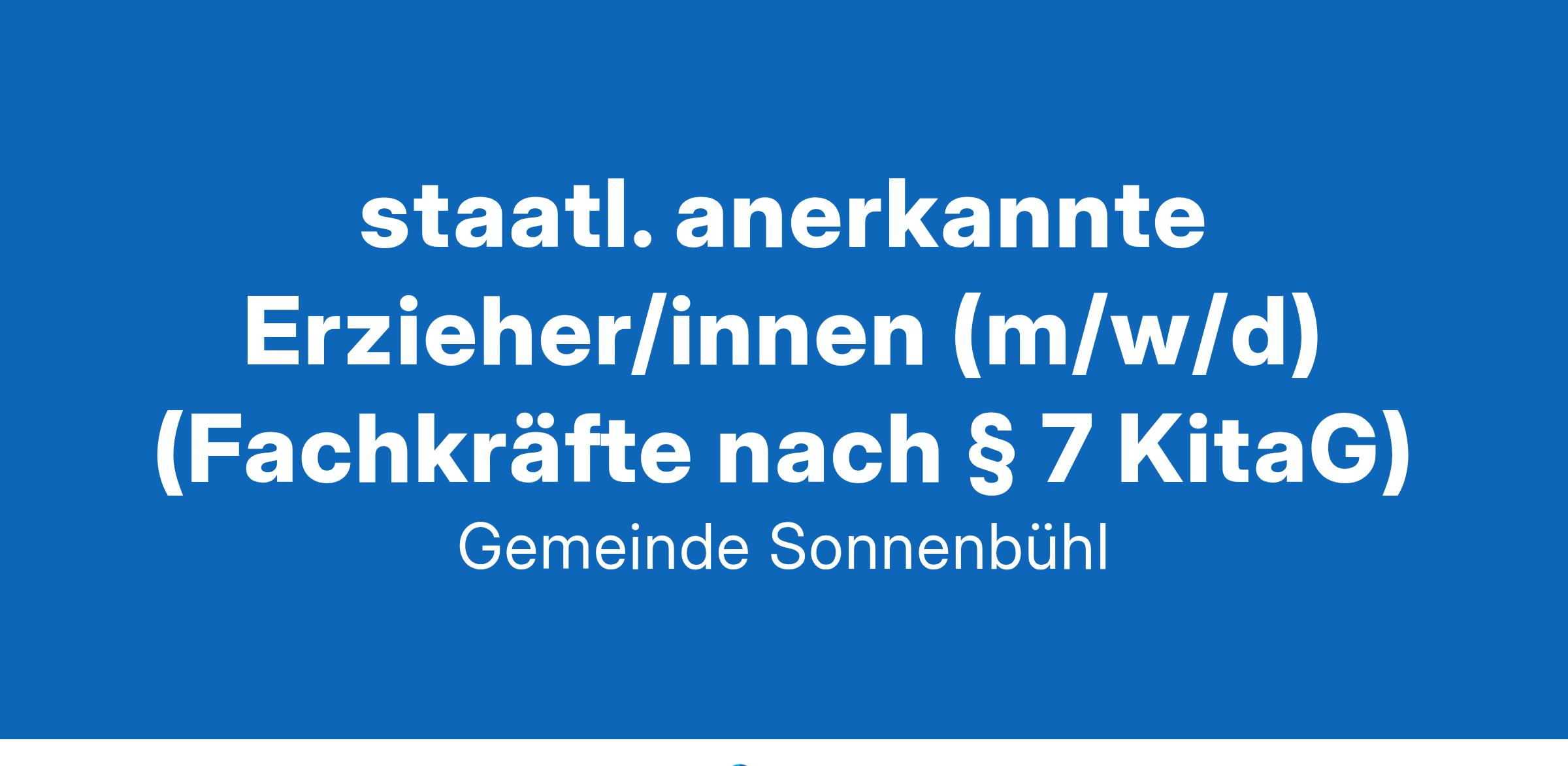 Die Gemeinde Sonnenbühl sucht zum frühestmöglichen Zeitpunkt für verschiedene Einrichtungen in Voll- und Teilzeit