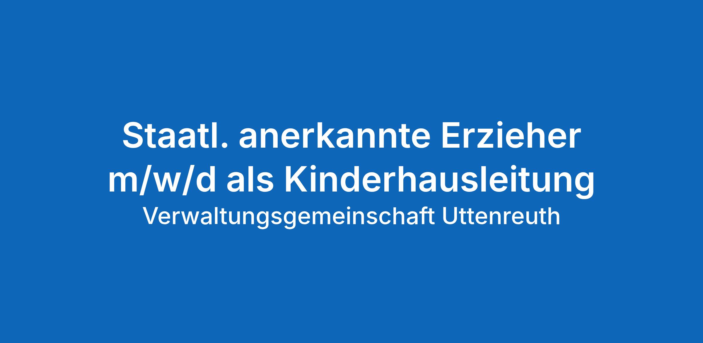 Wir wollen Kinder stärken, sie darin unterstützen ihre Potenziale zu entdecken und zu entfalten, Werte vermitteln und Orientierung geben. Wenn Sie daran mitarbeiten möchten, senden Sie Ihre Bewerbung bis 30.04.2026 online über Interamt.de oder direkt an bewerbung@vg-uttenreuth.de.