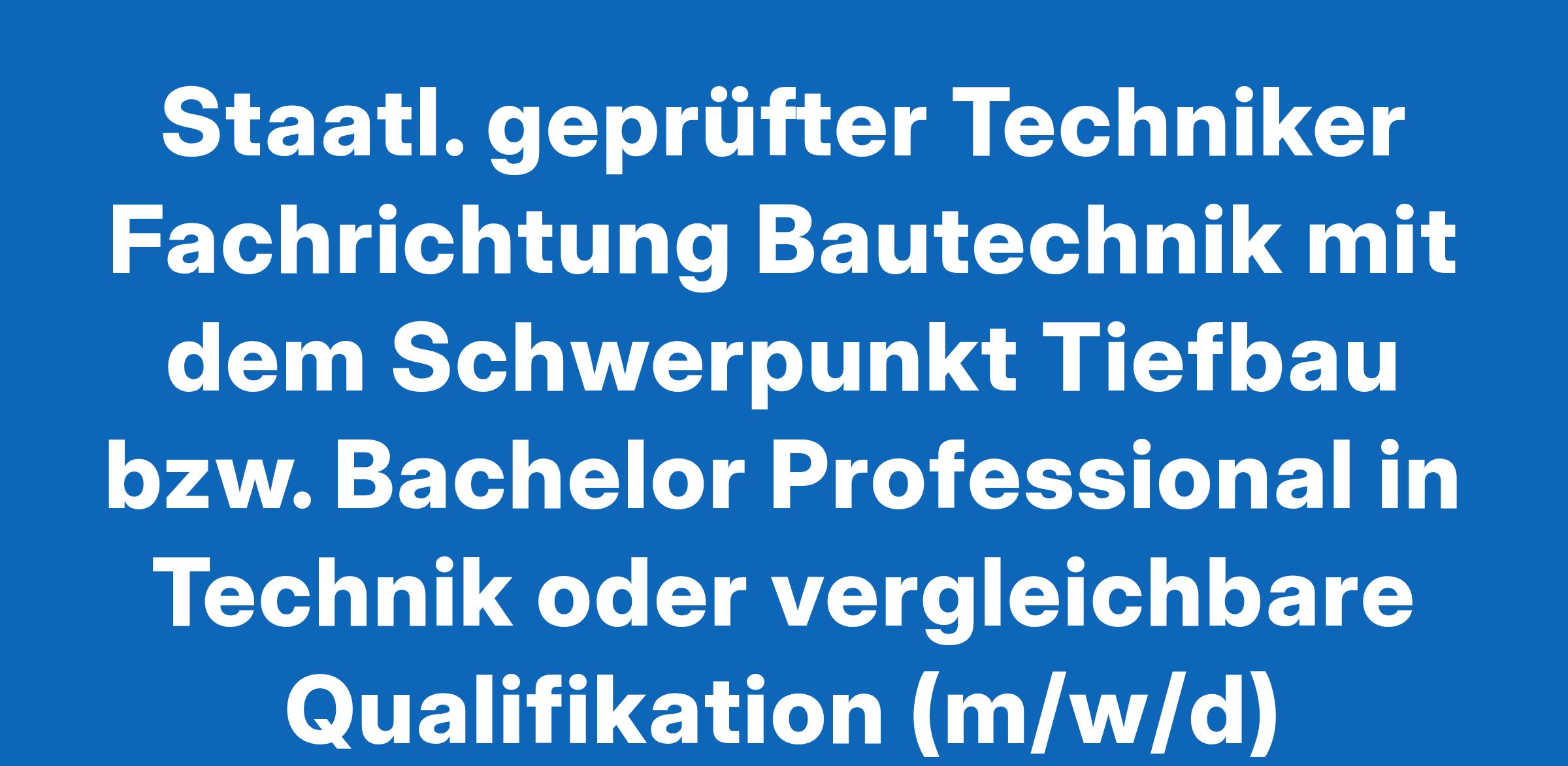 Staatl. geprüfter Techniker Fachrichtung Bautechnik mit dem Schwerpunkt Tiefbau bzw. Bachelor Professional in Technik oder vergleichbare Qualifikation (m/w/d)