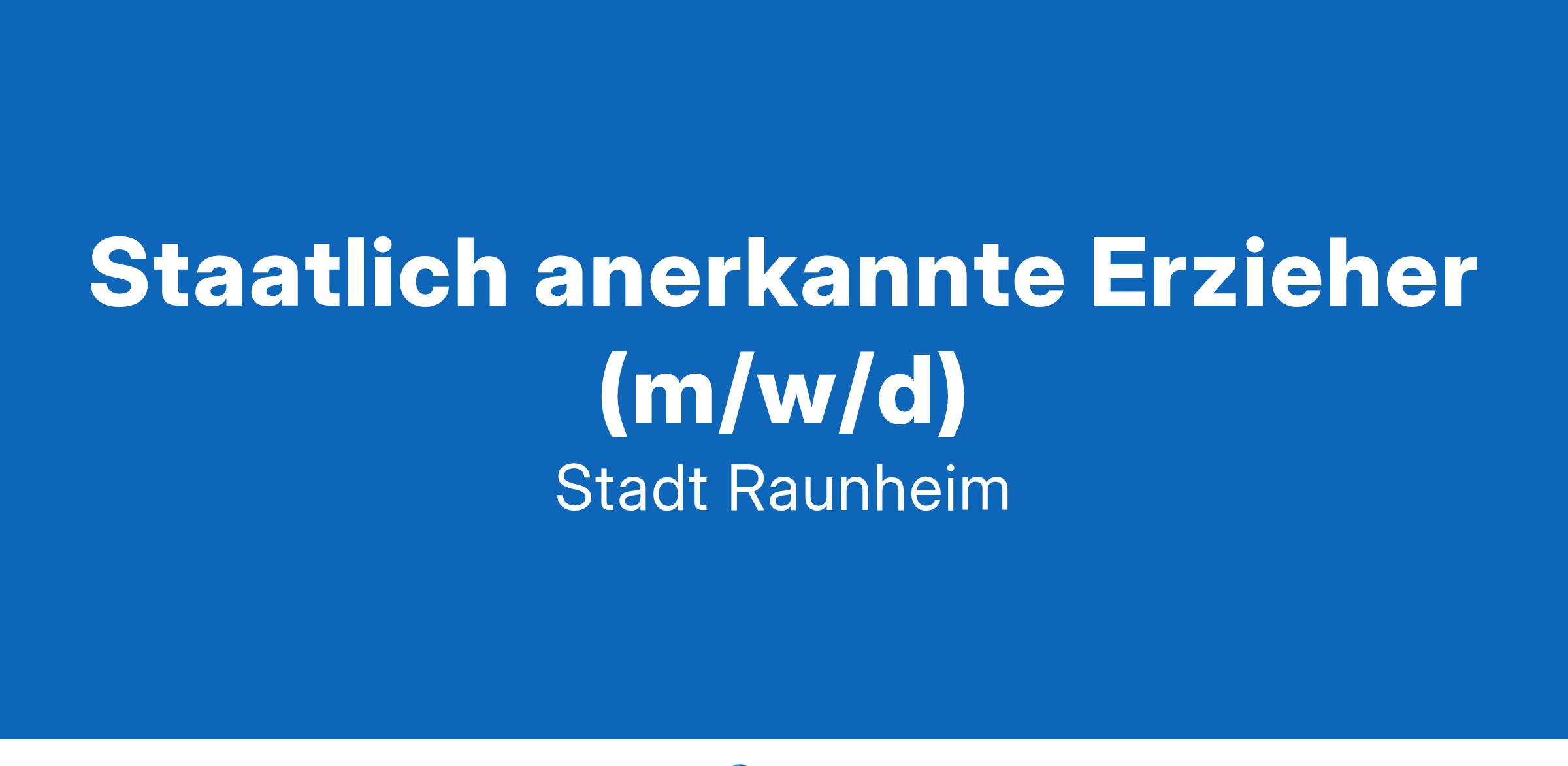 STADT RAUNHEIM DER MAGISTRAT DER STADT RAUNHEIM sucht ab sofort bzw. zum nächstmöglichen Zeitpunkt staatlich anerkannte Erzieher (m/w/d) (Vollzeit/Teilzeit, unbefristet) Die detaillierten Stellenbeschreibungen finden Sie auf unserer Homepage www.raunheim.de (Online-Karriereportal). Original Anzeige