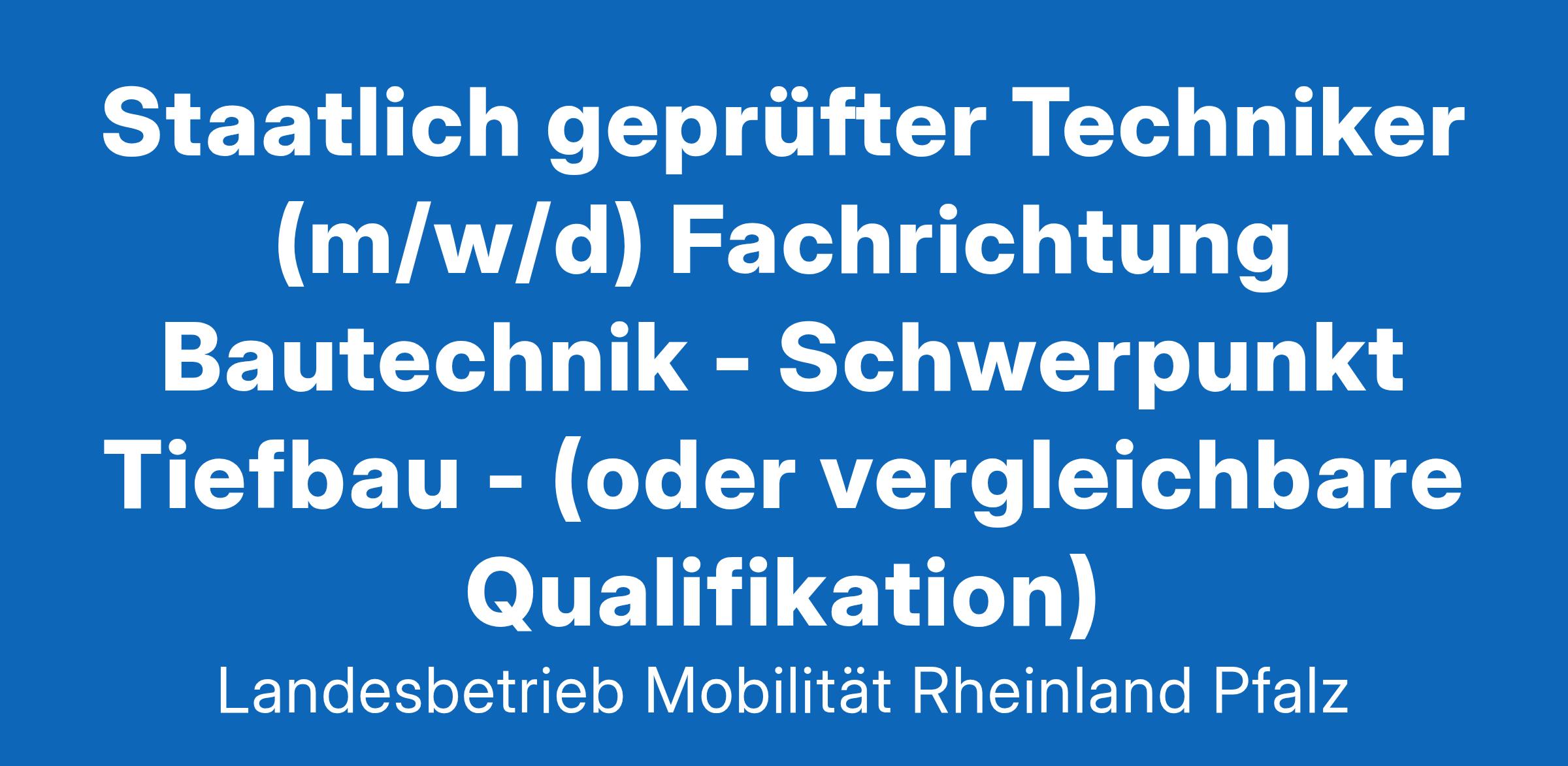erfolgreicher Abschluss einer Ausbildung als staatlich geprüfter Techniker (m/w/d) der Fachrichtung Bautechnik -Schwerpunkt Tiefbau- bzw. eine vergleichbare Ausbildung