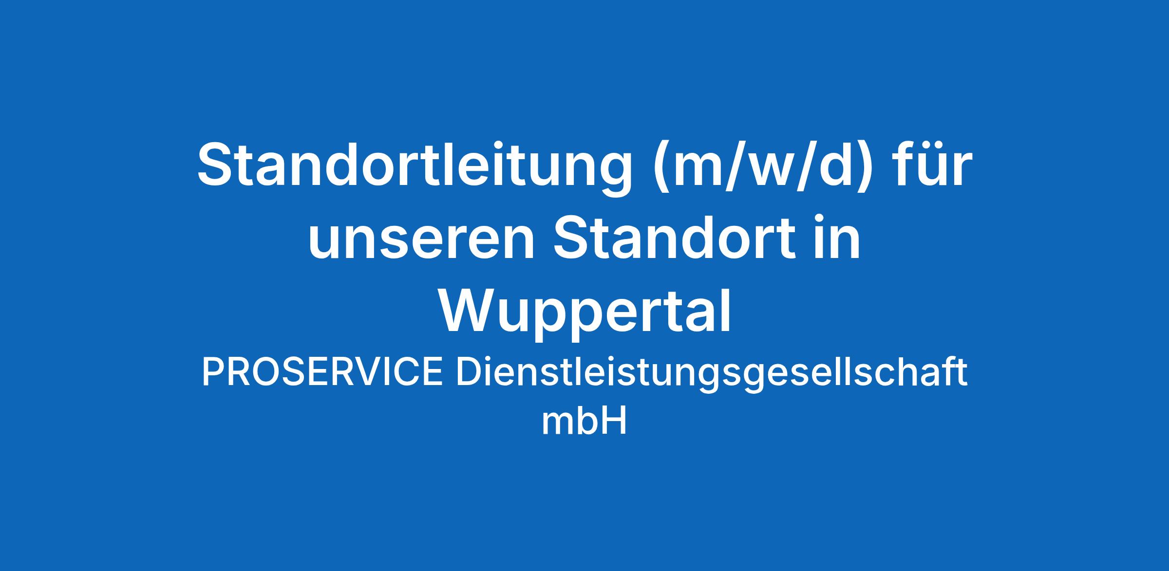 Ab dem 01.06.2026 suchen wir einen Standortleiter / eine Standortleiterin (m/w/d) in Vollzeit (40 Wochenstunden) für unseren Standort in Wuppertal.