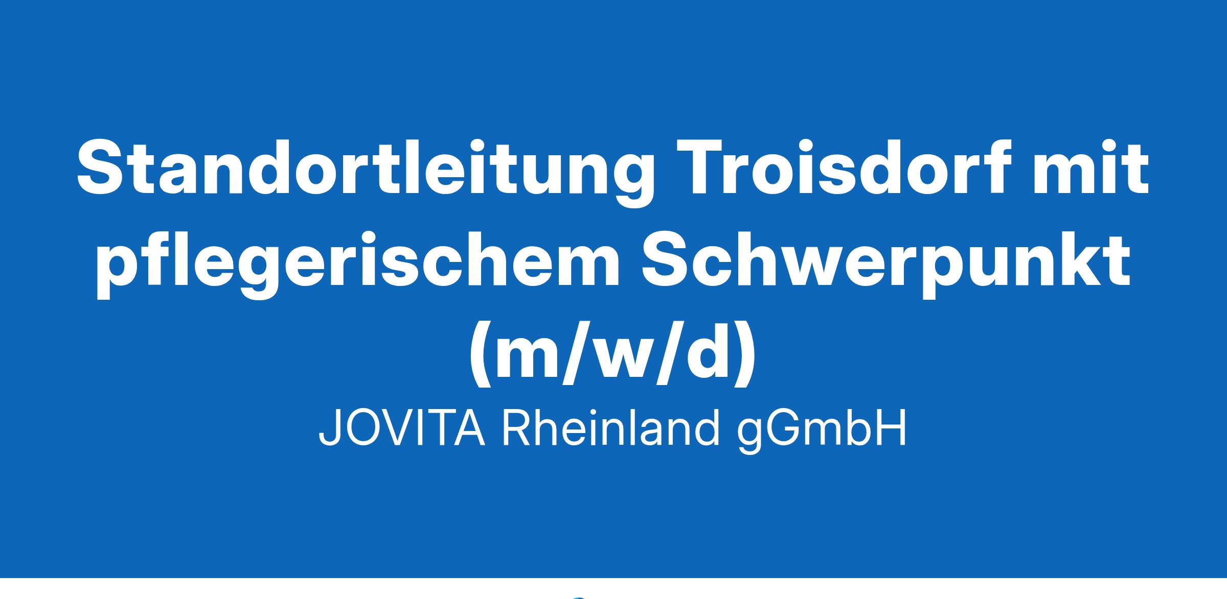 Standortleitung Troisdorf mit pflegerischem Schwerpunkt (m/w/d) 53840 Troisdorf Hybrid Vollzeit/Teilzeit Über uns Die JOVITA Rheinland ist ein Verbund aus der JOVITA Rheinland gGmbH und dem Haus Rheinfrieden. Die JOVITA Rheinland ist ein modernes Dienstleistungsunternehmen, das ambulante Dienste und besondere Wohnformen für erwachsene Menschen mit unterschiedlichen Behinderungen in den Regionen Köln, Leverkusen, Troisdorf/Siegburg und Eitorf bietet. Das Haus Rheinfrieden in Rhöndorf ist eine soziale Einrichtung mit einem Berufskolleg für Wirtschaft und Verwaltung und einem Internat für Kinder, Jugendliche und junge Erwachsene. Unser Anliegen ist die bestmögliche Unterstützung und individuelle Förderung von Menschen mit Behinderung sicherzustellen und ihre Teilhabe in allen Lebensbereichen umfangreich zu stärken. Deine Aufgaben Sicherstellung der Organisation und Qualität der ambulanten Grund- und Behandlungspflegeleistungen am Standort Troisdorf Führung und Anleitung der pflegerischen Mitarbeitenden inhaltliche Weiterentwicklung des Leistungsangebotes im Team mit der pädagogischen Standortleitung Mitwirkung an der konzeptionell-inhaltlichen Weiterentwicklung der JOVITA Rheinland und ihrer vielfältigen Angebote in unseren verschiedenen Regionen Zusammenarbeit und Vernetzung mit anderen Einrichtungen und Institutionen in der Region Dein Profil Du hast eine abgeschlossene Ausbildung als Pflegefachkraft (Gesundheits- und Krankenpfleger:in, Altenpfleger:in oder vergleichbare Qualifikation) Du bringst Freude und Motivation an der aktiven und konzeptionellen Gestaltung von Lebensqualität für Menschen mit Behinderung mit Du hast Erfahrung in der Leitung von Teams und der Anleitung von Mitarbeitenden Bereitschaft zur gemeinsamen Teamleitung mit der pädagogischen Standortleitung Du hast einen Führerschein der Klasse B Wir bieten Dir wertschätzende Arbeitsatmosphäre Zusammenarbeit mit buntem, humorvollem Team herzlicher, offener und familiärer Umgang im Team offene Feedbackkultur im Team und mit den Führungskräften flache Hierarchien junges, innovatives Team & Unternehmen Attraktive Vergütung inkl. Sonderzahlungen faire und pünktliche Bezahlung nach AVR-Tarif zusätzliche Jahressonderzahlung (13. Monatsgehalt) Feiertags-, Sonntags- und Nachtzuschüsse Betriebliche Altersvorsorge & Beihillfezusatzversicherung Moderne Arbeitsmittel & Ausstattung digitale Dokumentation eigenes Handy & Laptop Diverse Entwicklungsmöglichkeiten jährliche Mitarbeitendenentwicklungsgespräche jährlich neu aufgelegtes Fort- und Weiterbildungsprogramm externe, einrichtungsübergreifende Fortbildungs- und Weiterentwicklungsmöglichkeiten durch die Josefs-Gesellschaft (Träger) bspw. Trainee-Programm, Lead-Programm Unternehmenskultur 3-monatiger Onboarding Prozess begleitet durch eine:n eigene:n Mentor:in regelmäßige Teambesprechungen gemeinsame Events: Betriebs- und Sommerfeste, Weihnachtsfeier, meditative Wanderung gute Verkehrsanbindung flexibel und mobil sein durch ein Jobticket im gesamten VRS-Gebiet Krisensicherer Arbeitsplatz Fahrrad-Leasing & weitere Rabatte Interessiert? Wir freuen uns auf Deine aussagekräftige Bewerbung! Bei Rückfragen kannst Du dich jederzeit an uns wenden. Frau Alina Bevers Stabsstelle Unternehmensentwicklung & Public Relations 0151 41400506 a.bevers@jovita-rheinland.de JOVITA Rheinland gGmbH Pfarrer-Kenntemich-Platz 4 53840 Troisdorf Teilen