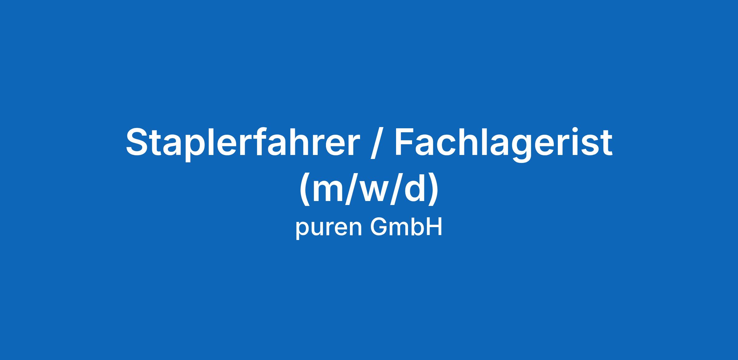 Staplerfahrer / Fachlagerist (m/w/d)