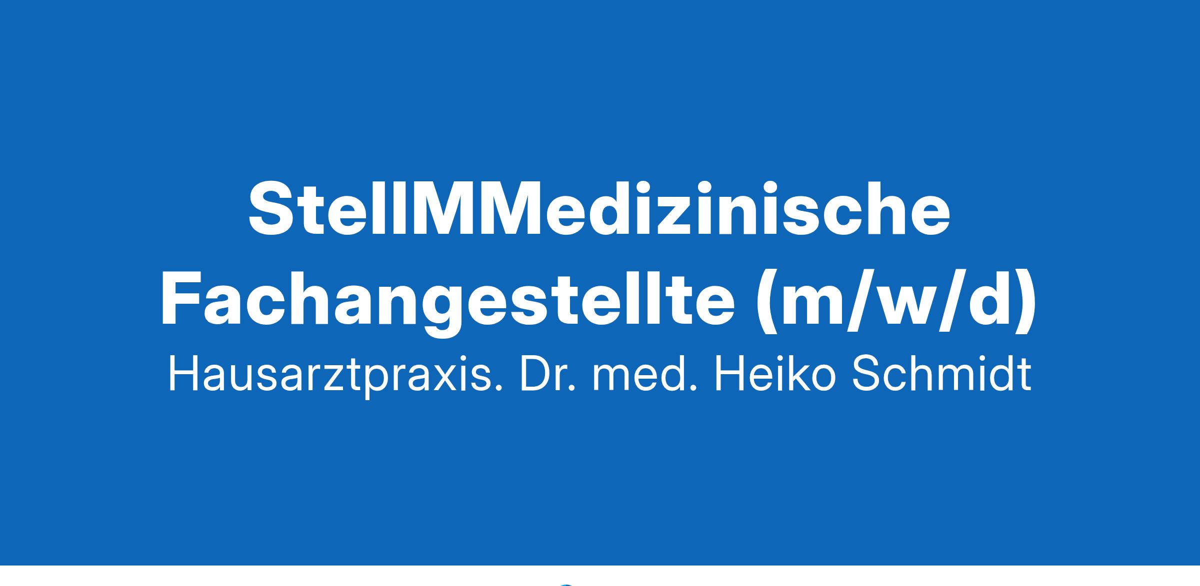 StellMMedizinische Fachangestellte (m/w/d) die Hausarztpraxis. Dr. med. Heiko Schmidt Wir suchen Unterstützung für unser Team. Minijob, keine Fachkenntnisse erforderlich, interessanter Tätigkeitsbereich aussagekräftige Bewerbung bitte an hausarztpraxisdannenberg@gmail.com Original Anzeige