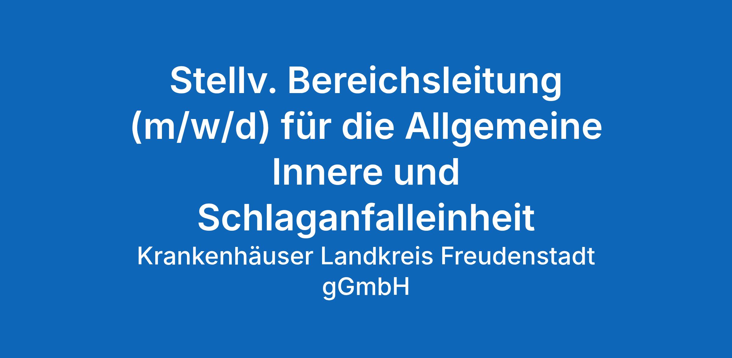 Stellv. Bereichsleitung (m/w/d) für die Allgemeine Innere und Schlaganfalleinheit