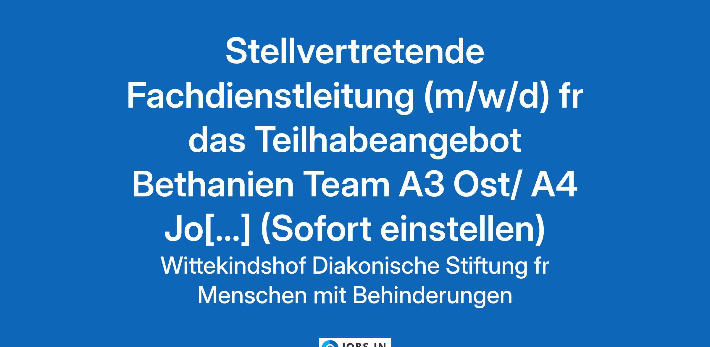 Zum 01.11.205 suchen wir unbefristet in Voll- und Teilzeit (29,25 - 39 Std.) eine stellvertretende Fachdienstleitung (m/w/d) fr das Teilhabeangebot Bethanien A3 Ost/ A4 .