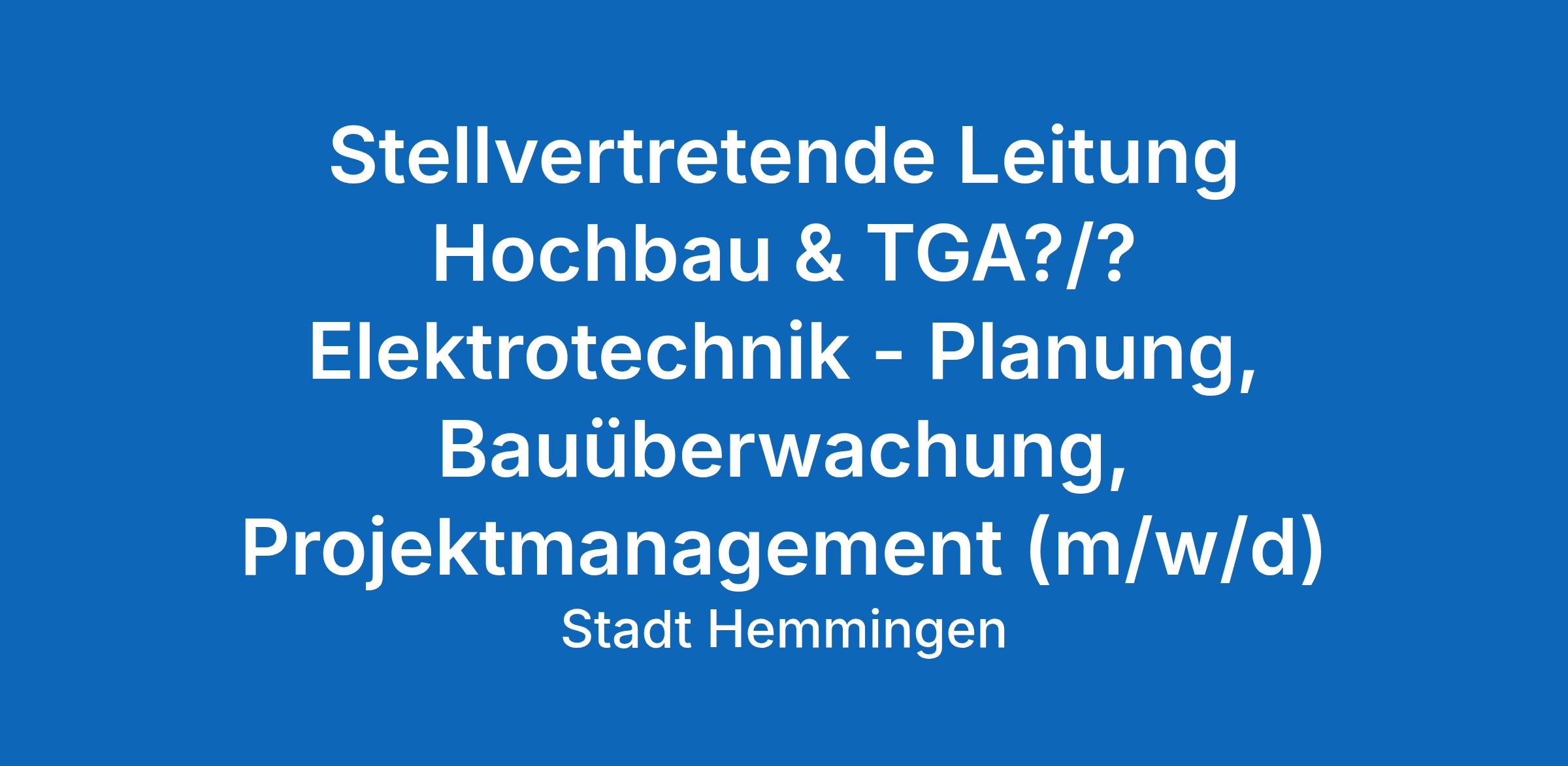 Stellvertretende Leitung Hochbau & TGA / Elektrotechnik – Planung, Bauüberwachung, Projektmanagement (m/w/d)