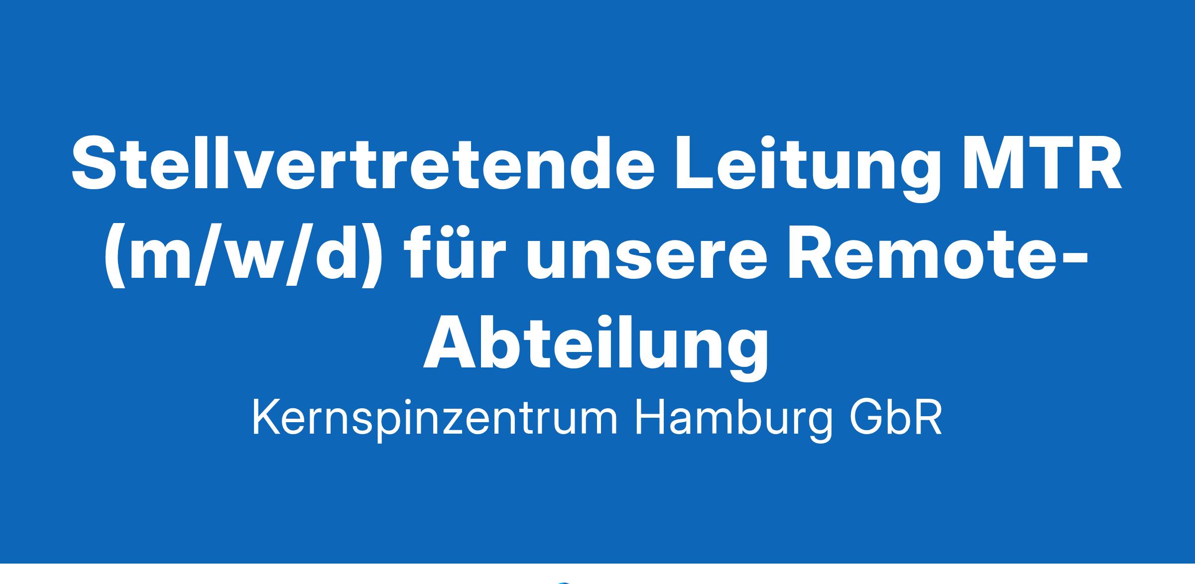 Stellvertretende Leitung MTR (m/w/d) für unsere Remote-Abteilung Stellvertretende Leitung MTR (m/w/d) für unsere Remote-Abteilung Das Kernspinzentrum Hamburg mit seinen zentralen Standorten in der Europa Passage, Harburg, Eidelstedt, am Neuen Wall und Eppendorf steht für exzellenten Patientenservice und breit gefächerte medizinische Diagnostik auf höchstem Niveau. Darauf kannst du dich freuen Unbefristetes Arbeitsverhältnis 38,5 Wochenstunden Arbeitszeit (Vollzeittätigkeit, verkürzter Freitag, keine Wochenenden) 30 Tage Urlaub sowie Sonderurlaub am 24.12. und 31.12. Eine einmalige Prämie nach erfolgreich bestandener Probezeit Verantwortungsvolle und vielseitige Tätigkeiten in leitender Funktion Arbeiten mit modernster Technologie und als Innovationstreiber gemeinsam die Zukunft gestalten Dynamisches Arbeitsumfeld mit flachen Hierarchien und Kommunikation auf Augenhöhe Strukturiertes und individuelles Onboarding Flexible Arbeitszeiten im Schichtdienst (von 6:00 bis 22:00 Uhr) sowie standortübergreifende Einsatzmöglichkeiten Fokus auf individueller Weiterbildung und -entwicklung Zuschuss zum Deutschlandticket Monatlich steuerfreier Sachbezug in Form einer aufladbaren Benefits-Card Fahrradleasing Attraktive Mitarbeitervorteile (Corporate Benefits) Tolle Teamevents und Sommerfeste Gute Verkehrsanbindung Kaffee, Wasser und Obst zum freien Verzehr Das zeichnet dich aus Wir suchen eine führungsstarke Persönlichkeit, die unser Team mit Leidenschaft und Engagement bereichert und sich kontinuierlich mit uns weiterentwickeln möchte. Du hast eine Ausbildung als MTR (m/w/d) erfolgreich abgeschlossen und bringst mehrjährige Berufserfahrung, sowie 2-5 Jahre Führungserfahrung mit. Du hast fundierte Kenntnisse in der Bedienung und Handhabung moderner Geräte, insbesondere von SIEMENS-Systemen im Bereich der Computer- und Magnetresonanztomografie. Führungskompetenz und Organisationstalent zeichnen dich aus. Du begeisterst durch Freude an der Arbeit mit Menschen aller Altersgruppen und ein empathisches Auftreten. Persönlich überzeugst du durch Teamgeist, Zuverlässigkeit sowie Eigeninitiative und Flexibilität. Ein hohes Maß an Verantwortungsbewusstsein, Freundlichkeit und strukturierter Arbeitsweise sind für dich selbstverständlich. Das erwartet dich Leitung und Koordination des reibungslosen Betriebsablaufs an den diagnostischen Geräten, insbesondere in der CT- und MRT-Diagnostik. Sicherstellung der optimalen Nutzung und Verfügbarkeit aller Geräte sowie der Einhaltung von Qualitätsstandards. Standortübergreifende Einsatzplanung in Abstimmung mit dem Team. Ansprechpartner für technische und organisatorische Fragen rund um die Geräte und die Diagnostikprozesse. Unterstützung bei der Einarbeitung neuer Mitarbeitender und Förderung der Weiterentwicklung des Teams. Sicherstellung einer exzellenten Patientenversorgung und Zusammenarbeit mit den behandelnden Ärzten. Leitung und Koordination von Remote-Arbeit, sowie die Führung des Teams aus der Ferne (virtuell)