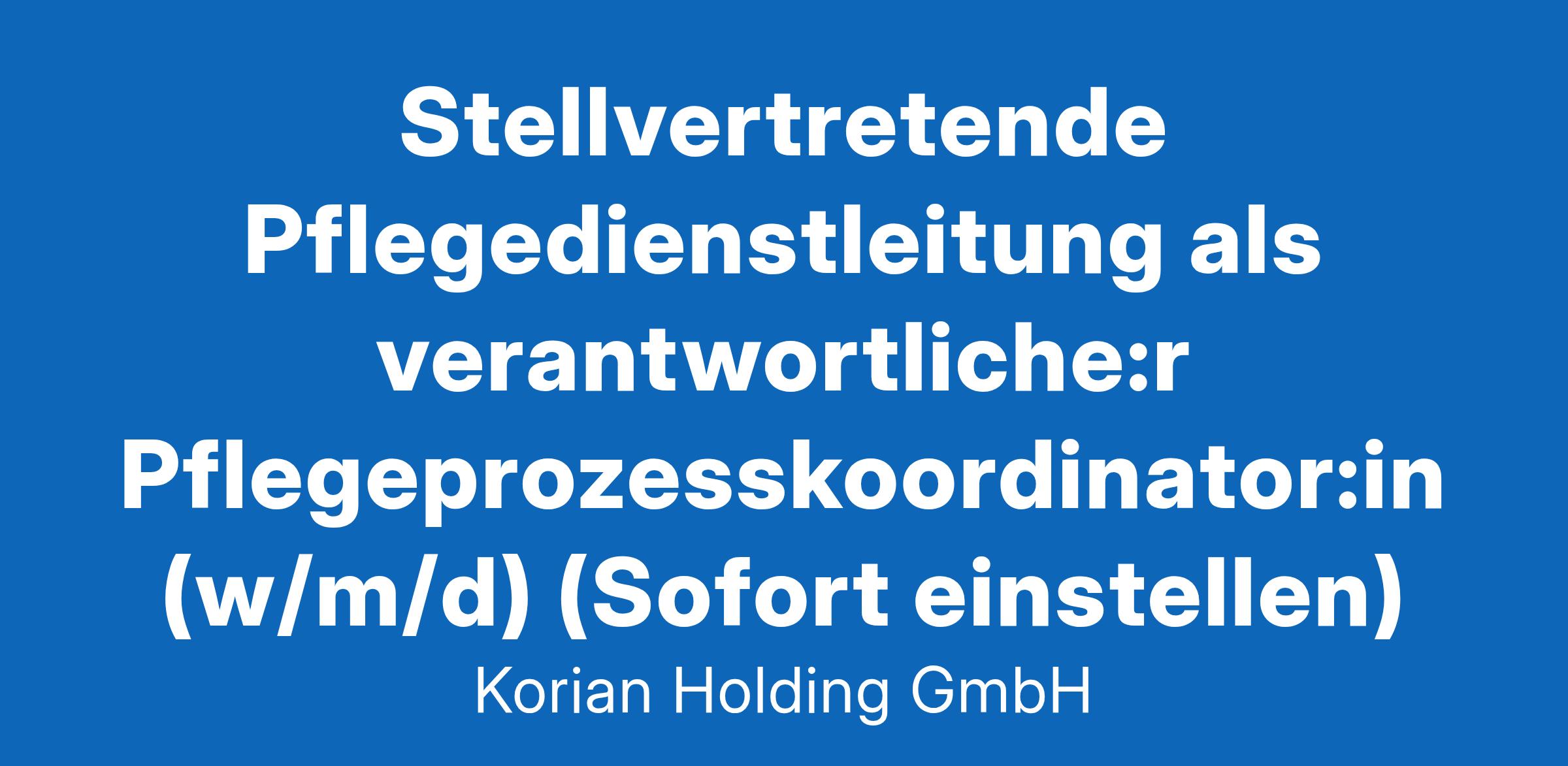 Stellvertretende Pflegedienstleitung als verantwortliche:r Pflegeprozesskoordinator:in (w/m/d) (Sofort einstellen)