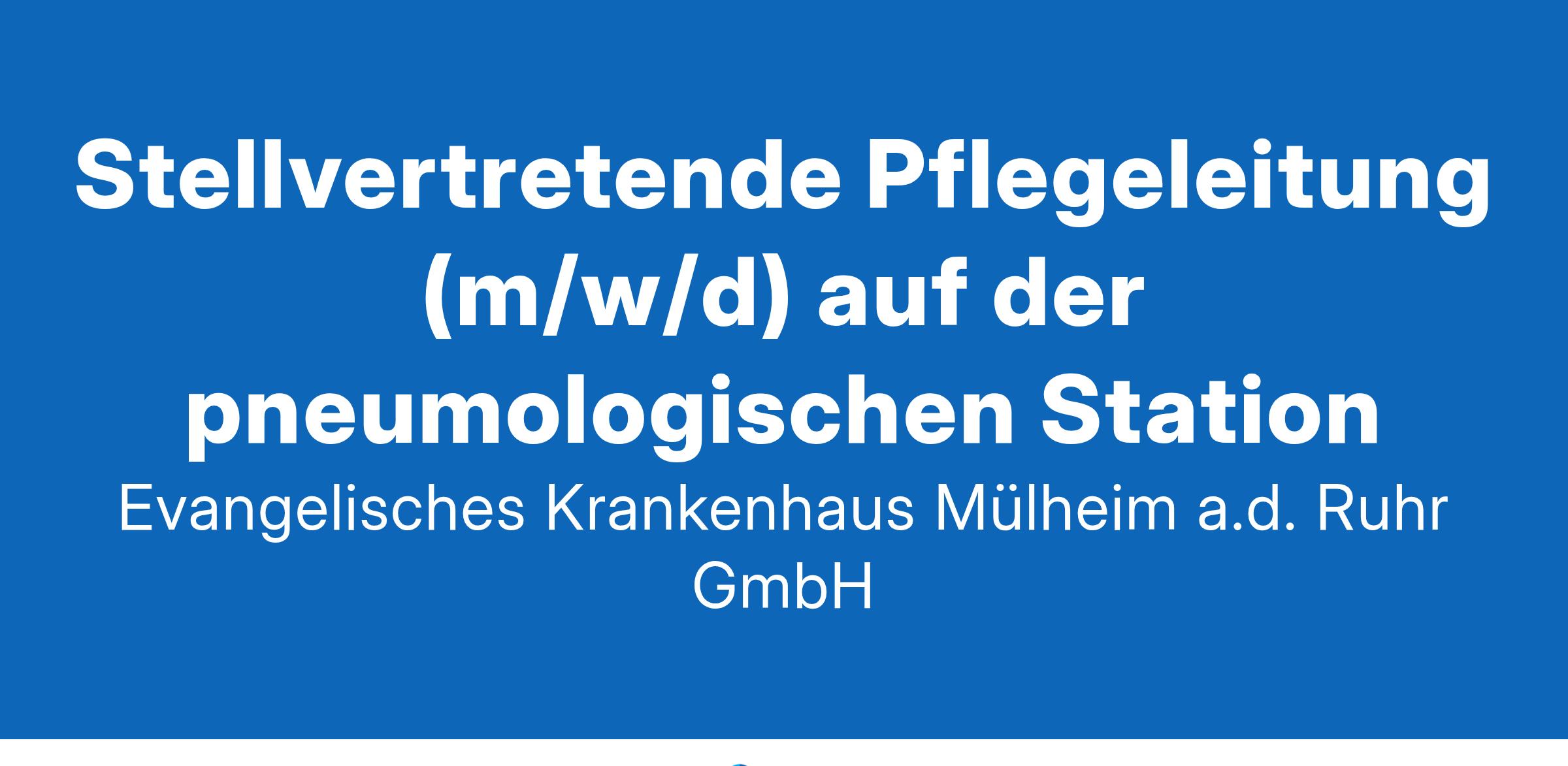 Karriere im Evangelischen Krankenhaus MülheimIn der Pneumologischen Klinik werden die Ursachen von entzündlichen oder chronischen Erkrankungen der Atemwege und der Lunge diagnostiziert und mit optimalen Therapie behandelt. Wir bieten unseren Mitarbeitenden ein professionelles und modernes Arbeitsumfeld. Ein angenehmes Arbeitsklima sowie ein guter Teamgeist sind für uns selbstverständlich. Die Kompetenz und die Motivation unserer Mitarbeitenden sind uns sehr wichtig: Daher unterstützen wir unsere Mitarbeitenden mit hochprofessionellen Fort- und Weiterbildungen in ihrer beruflichen und persönlichen Weiterentwicklung. In unseren Kliniken fühlen wir uns dem Menschen verpflichtet, unabhängig davon, ob es sich um Mitarbeitende, Patientinnen und Patienten oder um Angehörige handelt. Unser Miteinander gestalten wir auf Basis unserer gemeinsamen Werte. Das heißt unter anderem, dass wir jedem Menschen mit Respekt begegnen, in den offenen Austausch gehen und verlässlich in unseren Entscheidungen sind. Wir übernehmen Verantwortung gegenüber Anderen und gestalten gemeinsam nachhaltig unsere Zukunft. Zur Verstärkung unseres Pflegeteams und zur Unterstützung der Leitung auf der pneumologischen Station suchen wir zum nächstmöglichen Zeitpunkt eine erfahrene Pflegefachkraft (m/w/d) als stellv. Stationsleitung