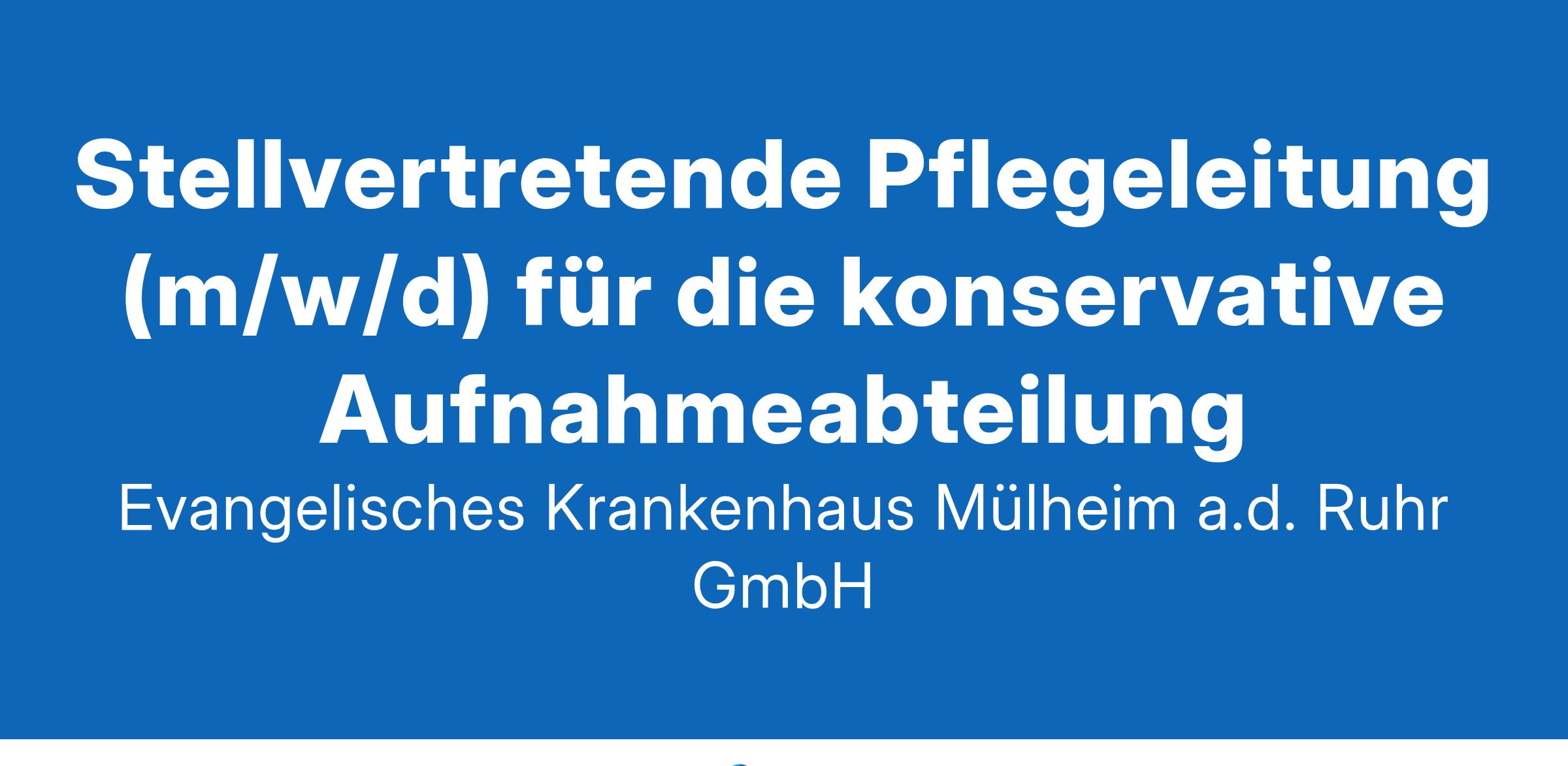 Karriere im Evangelischen Krankenhaus MülheimDie Aufnahmestation im Ev. Krankenhaus Mülheim (EKM) stellt ein effektives und zukunftsweisendes Instrument zur Behandlungssteuerung dar. Hier werden vorrangig Patientinnen und Patienten der konservativen Kliniken behandelt. Noch am Aufnahmetag wird entschieden, ob eine längere Weiterbehandlung notwendig ist. Wir bieten unseren Mitarbeitenden ein professionelles und modernes Arbeitsumfeld. Ein angenehmes Arbeitsklima sowie ein guter Teamgeist sind für uns selbstverständlich. Die Kompetenz und die Motivation unserer Mitarbeitenden sind uns sehr wichtig: Daher unterstützen wir unsere Mitarbeitenden mit hochprofessionellen Fort- und Weiterbildungen in ihrer beruflichen und persönlichen Weiterentwicklung. In unseren Kliniken fühlen wir uns dem Menschen verpflichtet, unabhängig davon, ob es sich um Mitarbeitende, Patientinnen und Patienten oder um Angehörige handelt. Unser Miteinander gestalten wir auf Basis unserer gemeinsamen Werte. Das heißt unter anderem, dass wir jedem Menschen mit Respekt begegnen, in den offenen Austausch gehen und verlässlich in unseren Entscheidungen sind. Wir übernehmen Verantwortung gegenüber Anderen und gestalten gemeinsam nachhaltig unsere Zukunft. Zur Verstärkung unseres Pflegeteams und zur Unterstützung der Leitung auf der konservativen Aufnahmestation suchen wir zum nächstmöglichen Zeitpunkt eine erfahrene Pflegefachkraft (m/w/d) als stellv. Stationsleitung