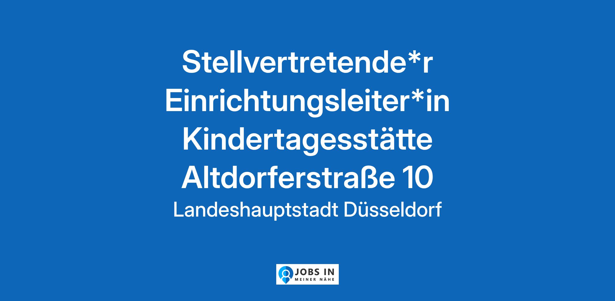 .... zum nächstmöglichen Zeitpunkt Stellvertretende*r Einrichtungsleiter*in Kindertagesstätte Altdorferstraße 10 für das Amt für Soziales und Jugend EG S 9 TVöD Die Abteilung 51/2 ist mit ihren rund 1500 Mitarbeitenden die größte Abteilung der Stadtverwaltung Düsseldorf und befasst sich mit allen... T1;Führung;Grundschule;Teamleitung;Kommunikation;Sozialdienst;Leistungsmotivation;Kreatives Arbeiten;Führung;Vorschule;Bildungsarbeit;Verantwortung;Bildungsbetreuung Original Stellenanzeige auf StepStone.de – Jetzt Jobagent bei StepStone einrichten und Traumjob finden! https://bit.ly/2KOagYD Mehr Informationen zu Arbeitgebern, Gehaltsdaten und Karrieretipps finden Sie auf StepStone.de