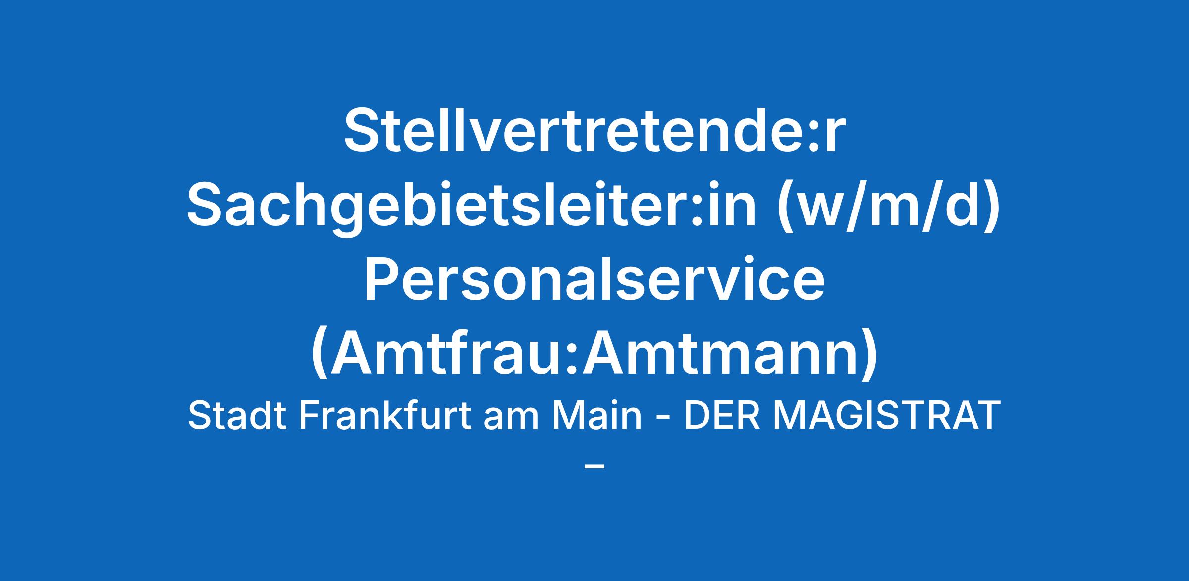 Jede Bewegung braucht Menschen, die überzeugt vorangehen. Darum suchen wir Sie als stellvertretende:r Sachgebietsleiter:in (w/m/d) Personalservice für unser Stadt-Up Frankfurt! Bereit für eine Aufgabe für Herz und Verstand? Bewerben Sie sich jetzt und führen Sie das Team Frankfurt in die Zukunft!
