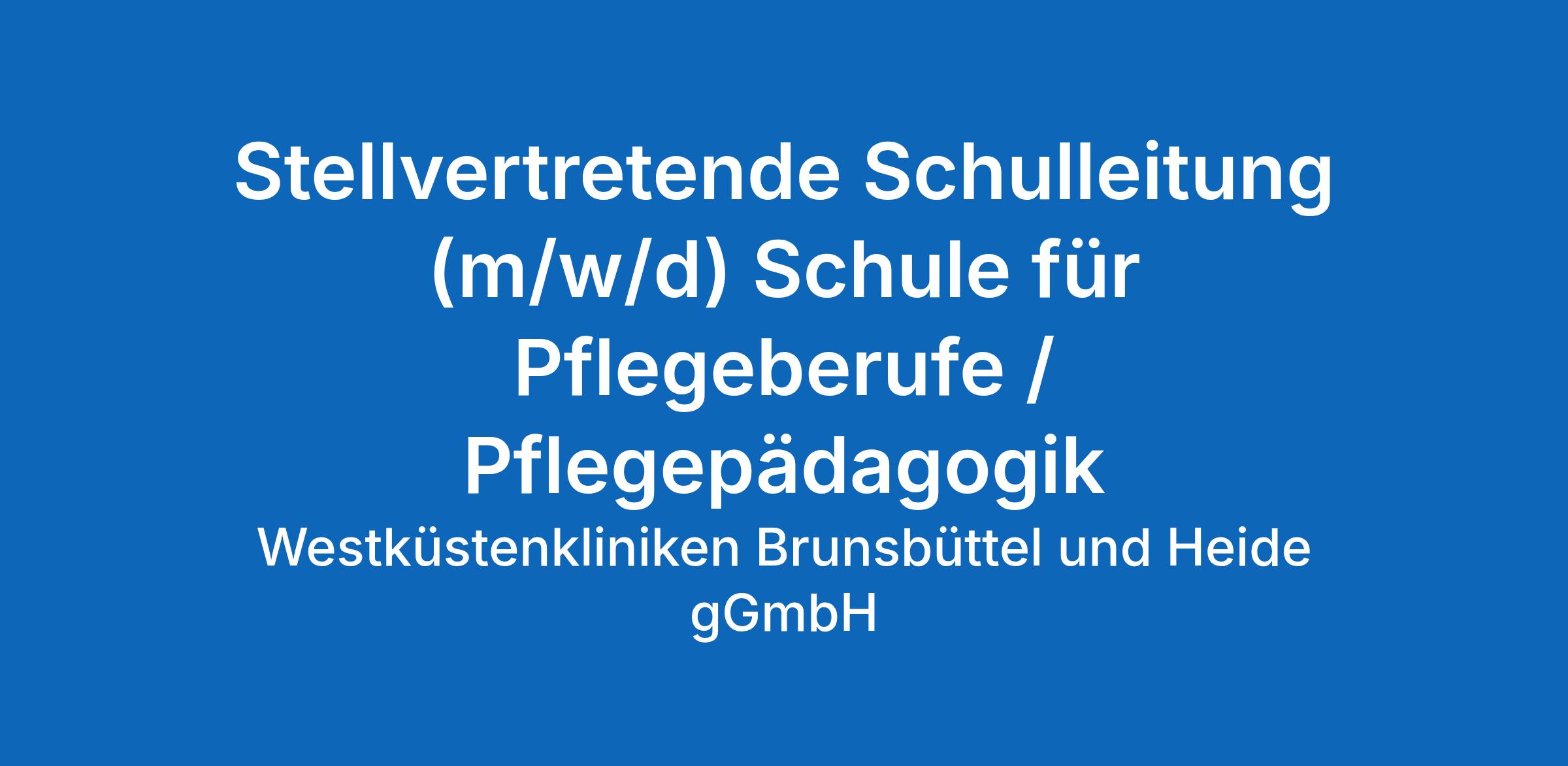 Im Bildungszentrum für Berufe im Gesundheitswesen an den Westküstenkliniken gGmbH in Heide bieten wir für das Ausbildungsteam an der Schule für Pflegeberufe mit 185 Ausbildungsplätzen zum 01.01.2026 in einem Leitungsteam auf Augenhöhe die nachstehende Besetzung an: