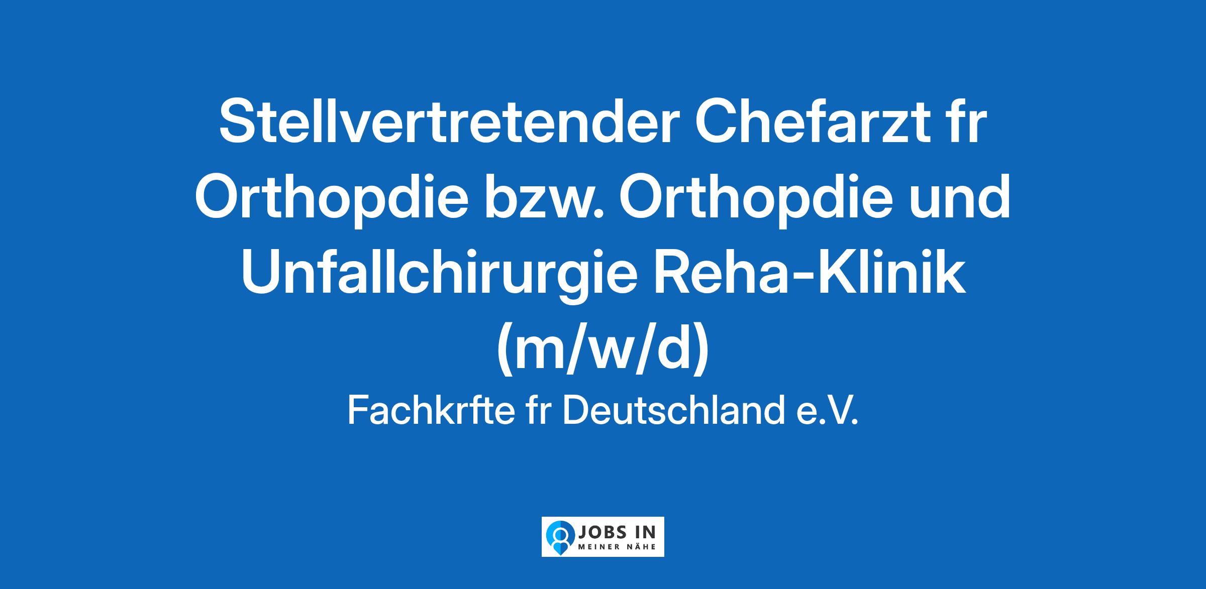 Wir suchen ab sofort: Stellvertretender Chefarzt fr Orthopdie bzw. Orthopdie und Unfallchirurgie Reha-Klinik (m/w/d)