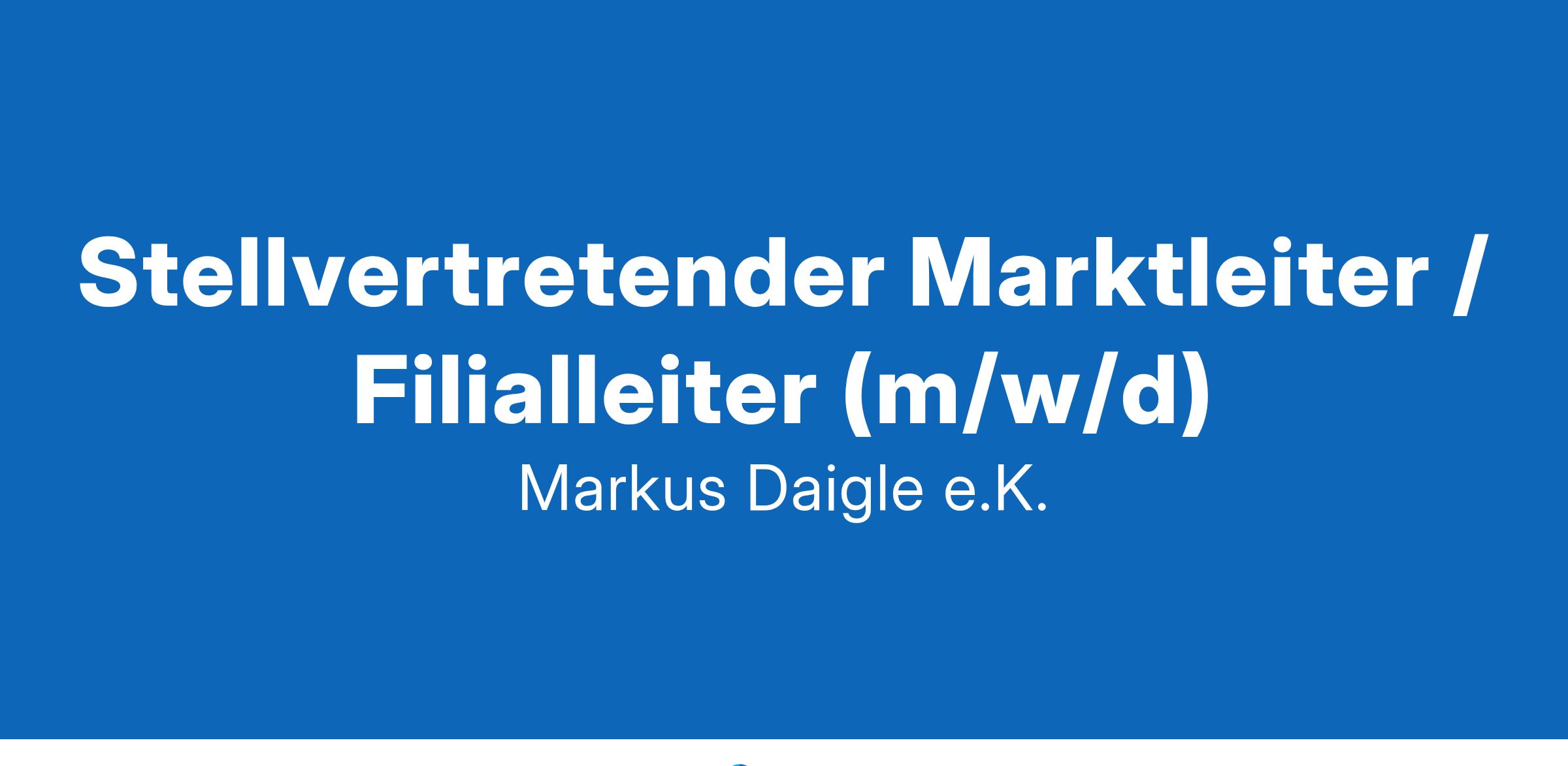 Mach was dein Herz dir sagt! EDEKA Daigle ist ein modernes, familiengeführtes Unternehmen in Rheinland-Pfalz, welches sich im ständigen Wachstum befindet. Wir betreiben derzeit zwei Lebensmittelmärkte an den Standorten Enkenbach-Alsenborn so wie in Winnweiler. Mit unseren 70 Mitarbeitern garantieren wir unseren Kunden eine geballte Kompetenz und ein außerordentliche Einkaufsatmosphäre. Für unseren Markt in Winnweiler suchen wir Sie in Vollzeit als Stellvertretender Marktleiter / Filialleiter (m/w/d) Referenznummer: 31614 Ihre Aufgaben Geschäftsablauf: Sie sind verantwortlich für reibungslose Marktabläufe Führung mit Herz: Sie arbeiten eng mit der Marktleitung zusammen und sind zuständig für die Personalplanung Kreative Warenpräsentation: Sie führen Ihre Sortimentsbereiche eigenständig und bestellen die Ware bedarfsgerecht Kundenservice: Durch kompetente Beratung sorgen Sie für ein positives Einkaufserlebnis beim Kunden Ihre Voraussetzungen Ausbildung: Sie verfügen über eine abgeschlossene kaufmännische Berufsausbildung und erste Führungserfahrung im Lebensmitteleinzelhandel Erfahrungen und Kenntnisse: Sie haben Kenntnisse und Erfahrungen im Warengeschäft und in der Sortimentsgestaltung Selbstständigkeit: Ihre Arbeitsweise ist gut strukturiert, Sie agieren selbständig und wissen Ihr Team zu motivierenen Kundenorientiertes Auftreten: Ein kundenorientiertes, sicheres und freundliches Auftreten ist für Sie selbstverständlich Ihre Vorteile Unbefristeter Arbeitsplatz: Wir bieten Ihnen einen krisensicheren und unbefristeten Arbeitsplatz Sonderzahlung: Bei uns erhalten Sie Urlaubs- und Weihnachtsgeld Erholung: Bei uns erhalten Sie 6 Wochen Urlaub im Jahr Jobrad: Unsere Mitarbeiter können über uns kostengünstig E-Bikes leasen Sonderleistungen: Wir unterstützen Sie durch vermögenswirksame Leistungen Weiterbildung: Weiterbildung ist für Sie ein wichtiger Faktor? Wir bieten E-Learning, Fortbildungen und Aufstiegsprogramme Zeiterfassung: Überstunden werden erfasst und vergütet Präsente: Zu Ihrem Geburtstag und Weihnachten erhalten Sie von uns ein Geschenk Events: Freuen Sie sich auf unser jährliches Mitarbeiter-Sommerfest sowie auf unsere Weihnachtsfeier Interessiert? Wir freuen uns auf Ihre Bewerbung mit Angabe Ihrer Verfügbarkeit und Gehaltsvorstellung. Aus Gründen der besseren Lesbarkeit unserer Stellenanzeigen wird auf die gleichzeitige Verwendung der Sprachformen männlich, weiblich und divers verzichtet. Sämtliche Personenbezeichnungen gelten selbstverständlich für alle Geschlechter. Ihre Ansprechperson Markus Daigle Mehr über EDEKA Südwest: https://karriere-edeka.de/