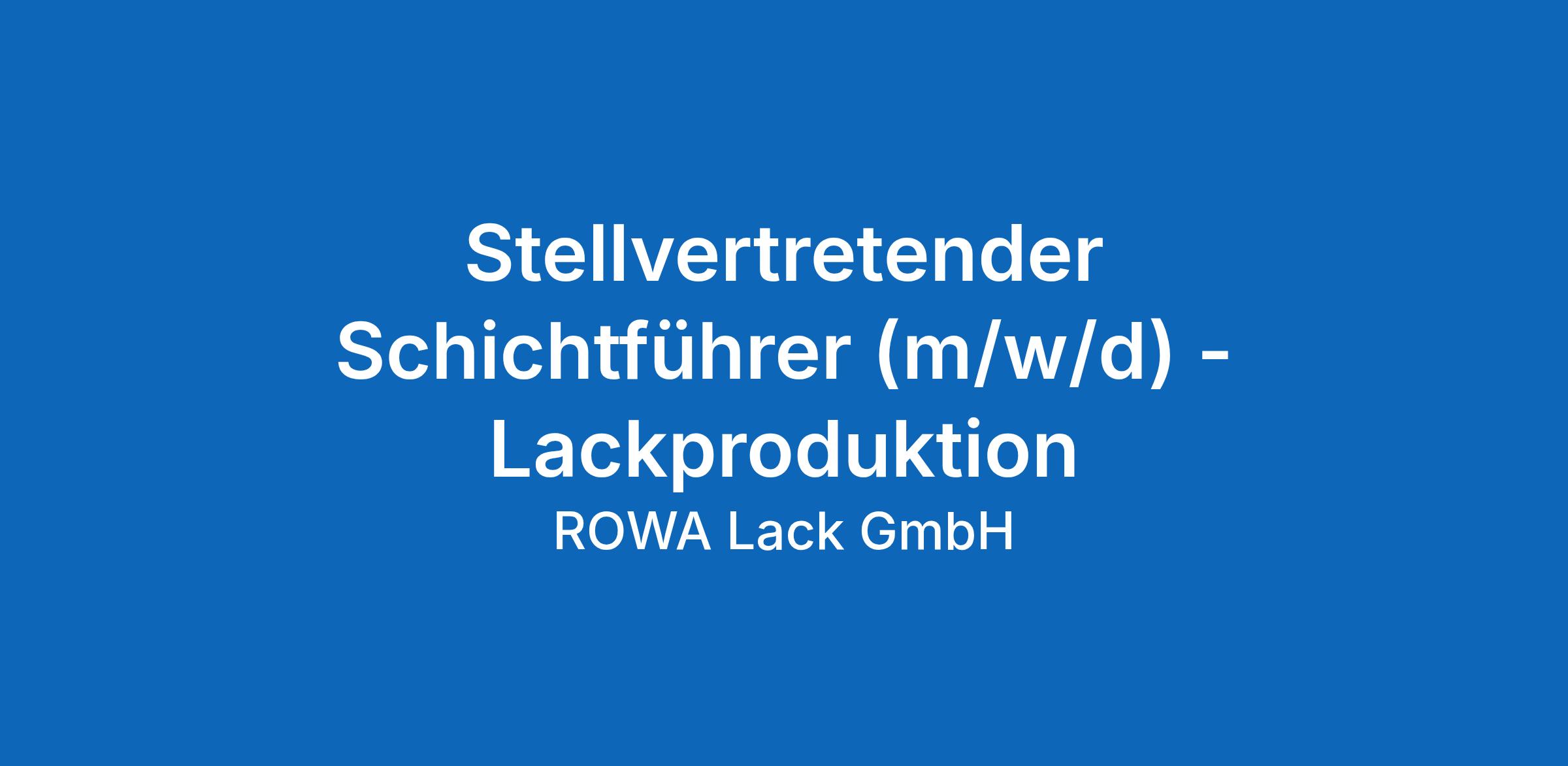 Für die ROWA Lack GmbH am Standort Seevetal suchen wir: