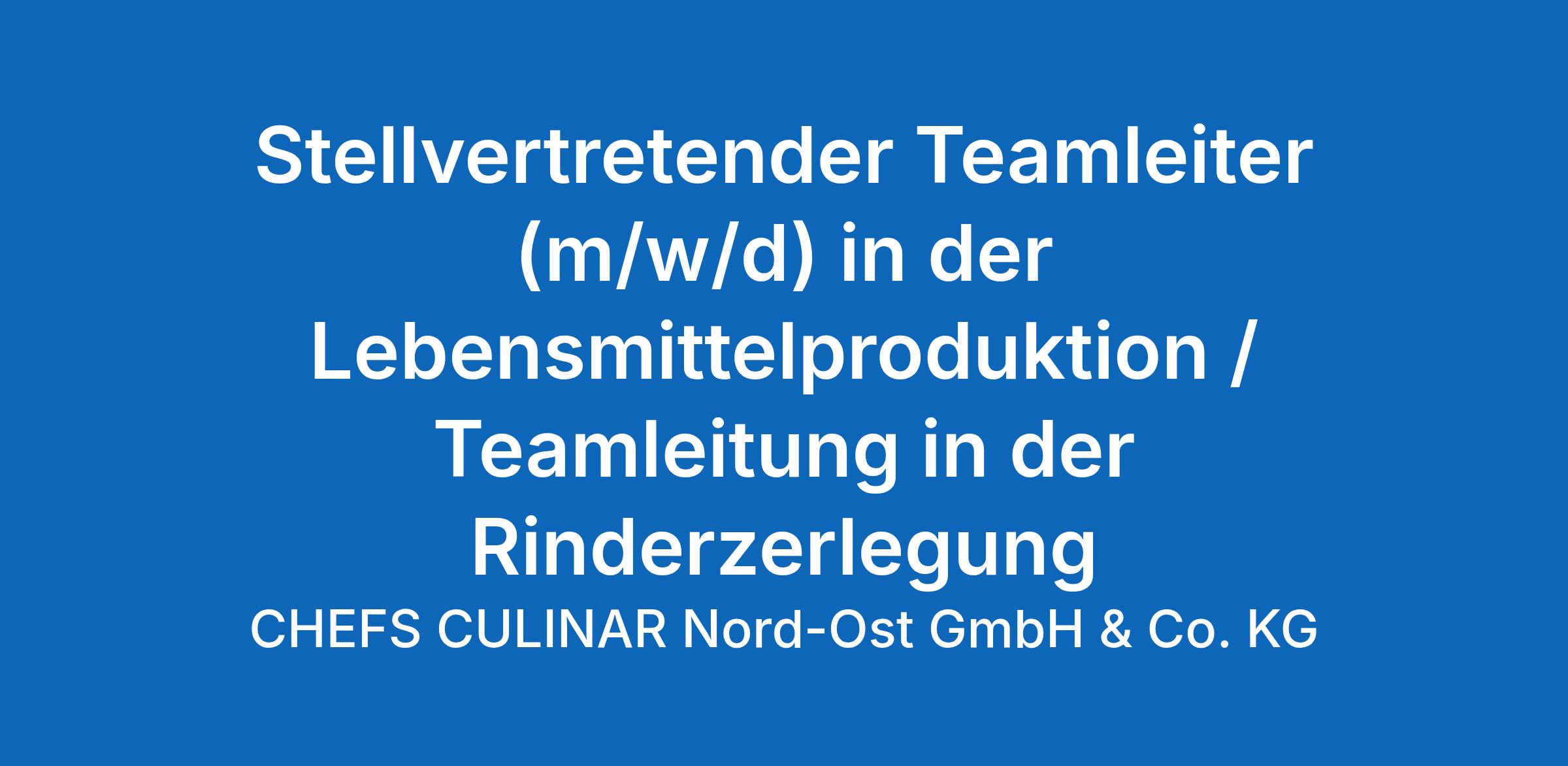 Stellvertretender Teamleiter (m/w/d) in der Lebensmittelproduktion / Teamleitung in der Rinderzerlegung in Vollzeit (39,0 Std./ Woche)