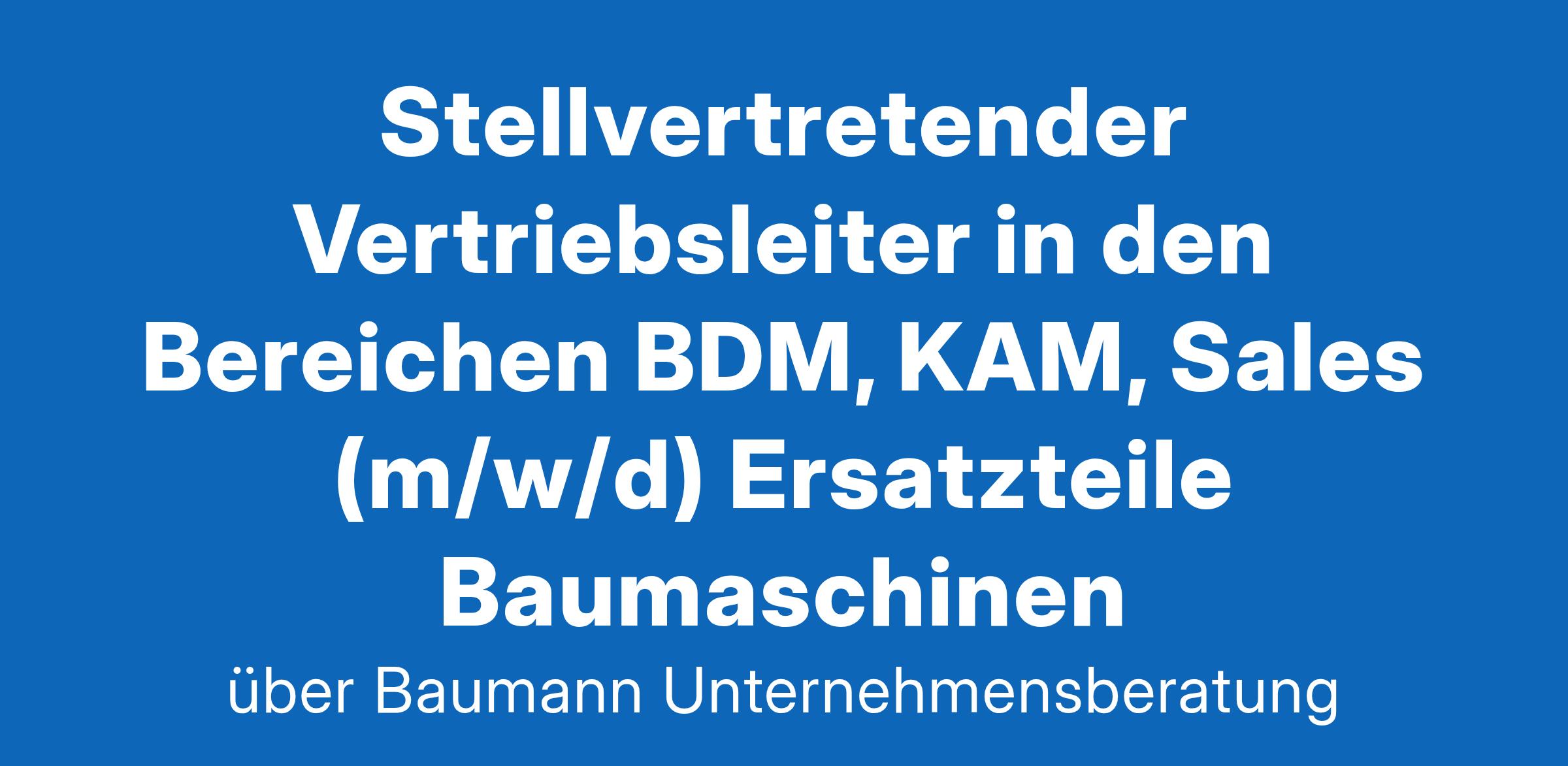 Unser Klient ist ein global agierendes Großhandelsunternehmen mit einem breiten Produktportfolio an hochwertigen Produkten, Ersatzteilen und Dienstleistungen für Baumaschinen etc. Mit jahrzehntelanger Erfahrung im Marktsegment der Spare-Parts , ist er der bevorzugte Partner für Kunden der Baumaschinen hersteller, Werkstätten, Vermieter und Händler. Der Erfolg basiert auf Innovation, exzellenter Kundenorientierung, digitaler Logistik und einem Team engagierter Mitarbeiter, die täglich daran arbeiten, die Marktposition weiter auszubauen. Mit Standorten weltweit und einer starken Präsenz in Europa bietet unser Klient eine dynamische, internationale Arbeitsumgebung. Unternehmenswerte sind nachhaltiges Wachstum, persönliche Entwicklungsmöglichkeiten und die Förderung von Teamgeist. Ziel ist es Kundenlösungen zu liefern, die Maßstäbe setzen â in Qualität, Verlässlichkeit und Service. Wir suchen im Auftrag unseres Klienten und zur Entlastung des Geschäftsführers DACH einen verantwortlichen Vertriebsleiter mit einem belastbaren Netzwerk in den Bereichen der Baumaschinenhändler, Bauindustrie, Bauunternehmen, Handel sowie Vermieter.