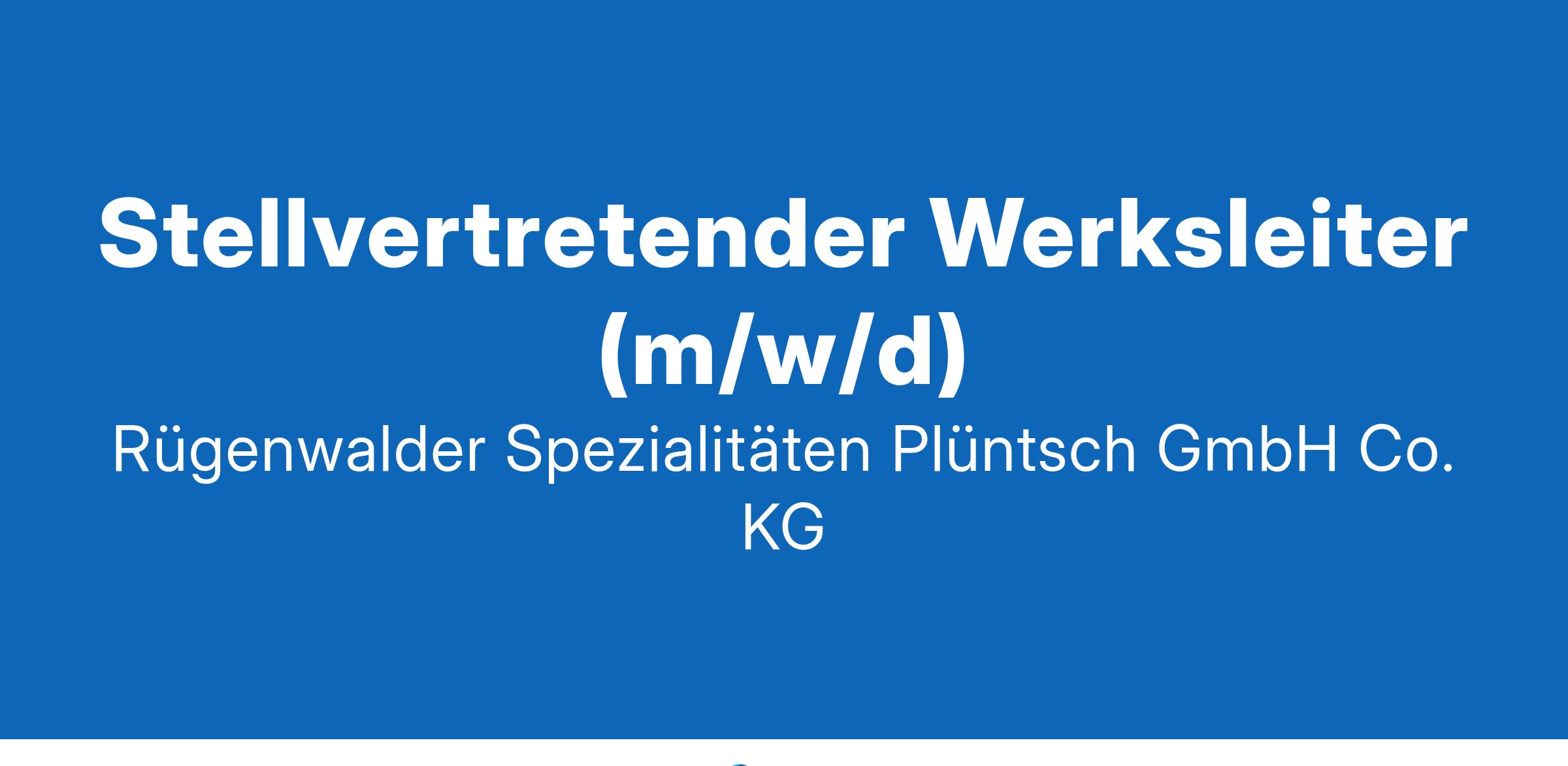 Rügenwalder Spezialitäten Plüntsch Staßfurt GmbH & Co. KG ist ein europaweit agierender und stetig wachsender mittelständischer Wurstproduzent. In fünfter Generation stellt das innovative Familienunternehmen mit insgesamt 160 Mitarbeitern an zwei Standorten feinste Rügenwalder Spezialitäten her. Für unseren Standort in Staßfurt suchen wir zum nächstmöglichen Termin einen Stellvertretenden Werksleiter (m/w/d)Deine Aufgaben: Unterstützung bei der fachlichen, disziplinarischen und organisatorischen Steuerung und Führung unseres Produktionsstandortes Staßfurt Überwachung und kontinuierliche Verbesserung unserer Fertigungsprozesse Unterstützung bei der technischen und technologischen Weiterentwicklung des Produktionsstandortes unter Berücksichtigung des Lean-Gedanken Unterstützende Führung der Mitarbeiter am Standort Verantwortung für präzise Datenanalysen von unseren Maschinen zur Identifikation von Abweichungen zu den Planzahlen und entsprechende Erarbeitung geeigneter Korrekturmaßnahmen Effiziente Vorbereitung von Projekten und Erstellung von Entscheidungsvorlagen für die entsprechenden Stakeholder Unterstützung bei der Umsetzung von Sicherheits- und Umweltstandards Vertretung des Werksleiters in dessen Abwesenheit Dein Profil: Abgeschlossenes Studium der Lebensmitteltechnologie, alternativ einen Meister-/ Technikerabschluss im Bereich Lebensmittelproduktion mit mehrjähriger einschlägiger Berufserfahrung in den o.g. Themenfeldern Mehrjährige Erfahrung als Führungskraft mit einer ausgeprägten Führungs- und Motivationskompetenz Fundierte Kenntnisse in der Koch- und Brühwurstherstellung wünschenswert Erfahrung im Umgang mit ERP-Systemen und OEE-Zahlen Selbstständige und eigenverantwortliche Arbeitsweise Zu Deinen Stärken zählen Zuverlässigkeit, Flexibilität, Begeisterungsfähigkeit, hohe Motivation und Teamgeist Unser Angebot:Du möchtest etwas bewegen und hast Spaß an abwechslungsreichen und spannenden Aufgaben in einem motiviertem Team? Wir bieten Dir eine Tätigkeit mit hoher Eigenverantwortung in unserem durch fortlaufende Erweiterungen und kontinuierlichen Innovation geprägtem Unternehmen.Du bist interessiert?Dann sende uns bitte Deine aussagekräftigen Bewerbungsunterlagen als PDF-Dokumente per Mail an folgende Adresse: Rügenwalder Spezialitäten