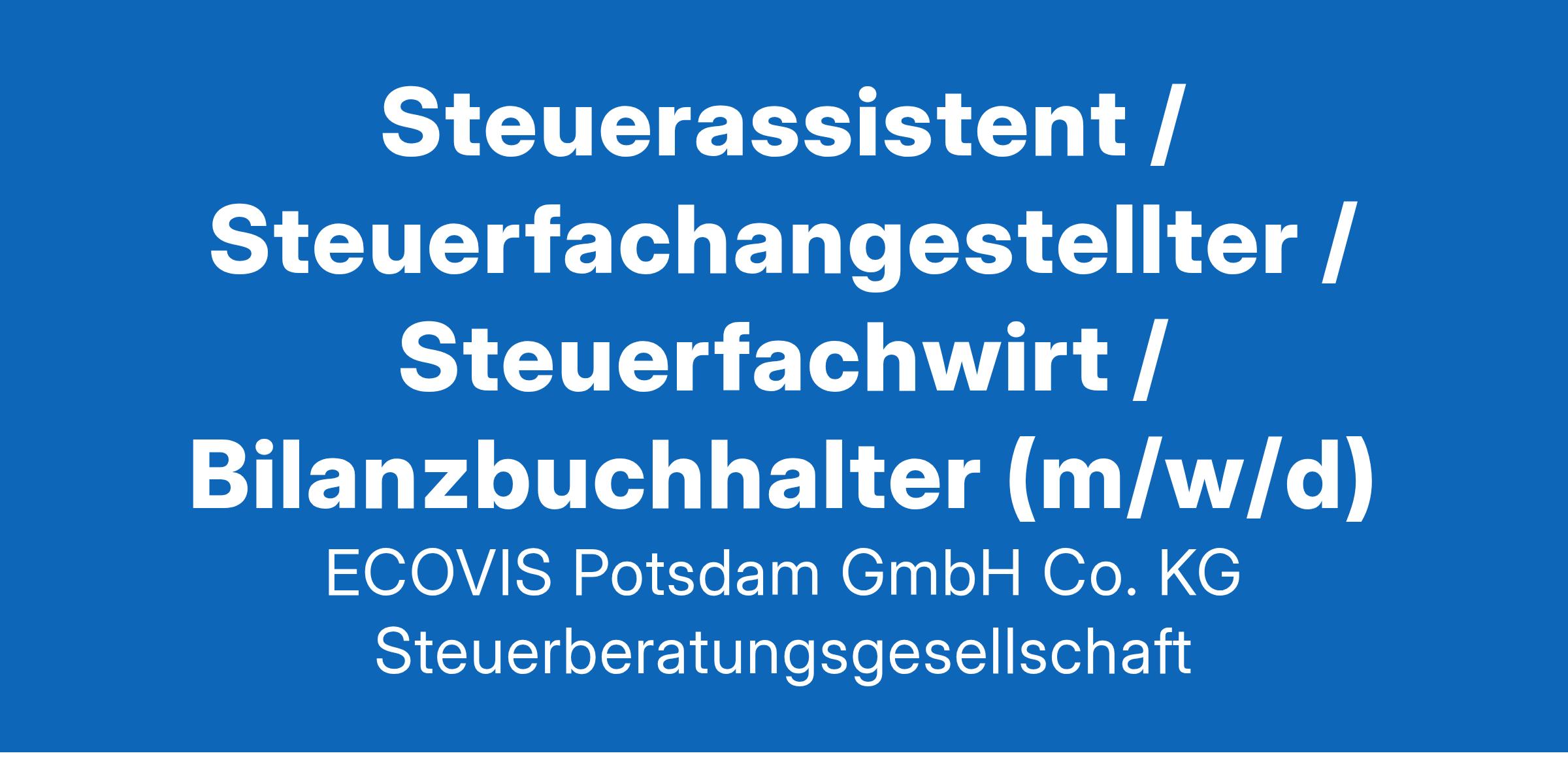 Gemeinsam mit dir wollen wir noch weiter wachsen und bieten spannende Jobs und Entwicklungsmöglichkeiten als...Steuerassistenten / Steuerfachangestellte / Steuerfachwirte / Bilanzbuchhalter (m/w/d)Deine AufgabenIn deiner Rolle als engagierter Experte bist du das Herzstück unseres Teams.Mit deinem Wissen im Bereich Finanzen und Steuern bietest du unseren mittelständischen Mandanten Sicherheit und Vertrauen. Du nimmst ihnen die Last der Finanzkommunikation ab, so dass sie sich voll und ganz auf ihr Geschäft konzentrieren können.Werde Teil unseres Teams, wo deine Expertise wertgeschätzt wird und du täglich dazu beiträgst, die Geschäftswelt ein Stück besser zu machen.Das zeichnet dich ausDu verfügst über Berufserfahrung im Bereich Steuern oder Finanzen.Auf dich ist Verlass und eine sorgfältige, selbständige und mandantenorientierte Arbeitsweise ist für dich selbstverständlich.Du hast Spaß an der Arbeit im Team und aktivem Mandantenkontakt.Das findest du so nur bei EcovisErlebe viele tolle Benefits u.a.:Kostenfreie Parkplätze an unserer KanzleiJobticketFahrtkostenzuschussKindergartenzuschussBerufliche Qualifikationswünsche begrüßen und unterstützen wir2-3 Tage HomeofficeFreiwilliger Kanzleisport (Rückenschule)Tolle Deals mit unseren Corporate Benefits bei 800 namhaften AnbieternIndividuelle Arbeitsgeberzuschüsse z.B. in Form von SpenditCardInteresse? Dann freuen wir uns auf deine Online-Bewerbung. Deine Ansprechpartnerin ist Frau Schulz.Ecovis berät den Mittelstand. In den mehr als 100 deutschen Büros arbeiten über 2.100 Mitarbeiter in Steuerberatung, Wirtschaftsprüfung, Rechts- und Unternehmensberatung. Darüber hinaus sind wir in über 90 Ländern weltweit vertreten.Die hohe Qualifikation unserer Mitarbeiter sichern wir durch fundierte Ausbildung sowie kontinuierliche und aktuelle Weiterbildung an der Ecovis Akademie.Was Ecovis macht und ausmacht unter: Jetzt bewerben