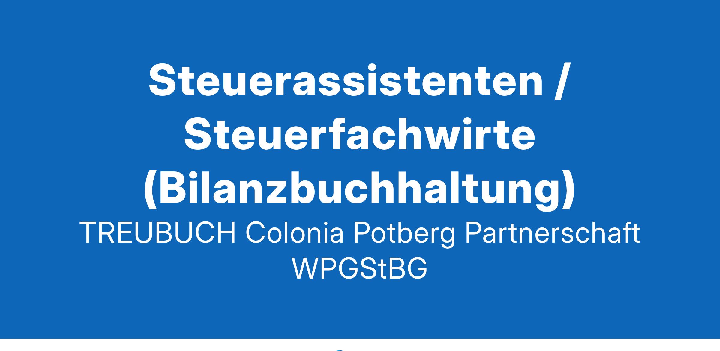 Dortmund & HomeofficeVoll- oder TeilzeitUnbefristetDie TREUBUCH-Colonia Potberg Partnerschaft ist eine auf dem Gebiet der Steuerberatung und Wirtschaftsprüfung tätige Gesellschaft mit rund 180 Mitarbeitern am Hauptsitz in Dortmund, die auf eine Erfahrung von mehr als 60 Jahren zurückblicken kann. Bei uns zählt ein nachhaltig partnerschaftliches und faires Miteinander. Erleben Sie ein modernes Arbeitsumfeld, das von Vertrauen und Loyalität geprägt ist. Es gibt viele gute Gründe für eine Karriere bei der TREUBUCH-Colonia Potberg Partnerschaft. Entdecken Sie hier, was bei uns für Sie drin ist.Für unsere Wirtschaftsprüfungs- und Steuerberatungsgesellschaft in Dortmund suchen wir, auf Grund unseres großen Wachstums, zum nächstmöglichen Termin mehrere Steuerassistenten / Steuerfachwirte (m/w/d) für die Bilanzbuchhaltung.Willkommen sind:SteuerfachangestellteSteuerfachwirteSteuerassistentenBilanzbuchhalterWir bieten Ihnen:Unbefristetes BeschäftigungsverhältnisEine attraktive Vergütung, umfassende Sozialleistungen, Urlaubs- und Weihnachtsgeld, Prämien und Tantieme39-Stunden-Woche, 30 Tage Urlaub, großzügige GleitzeitregelungIntensive EinarbeitungFlache Hierarchien und eine starke TeamarbeitMöglichkeit zum Homeoffice (nach Einarbeitung)Technisch hochwertige Arbeitsplätze in modernen BürogebäudenRegelmäßige Fort- und WeiterbildungsmöglichkeitenBetriebliche Krankenzusatzversicherung mit umfassender Kostenübernahme für medizinische LeistungenBetriebliche AltersvorsorgeArbeitstäglicher Essenszuschuss über hauseigene CafeteriaKostenlose Parkplätze auf dem FirmengeländeWeihnachtsfeier und Familienfeste auf dem Firmengelände am Hauptsitz in DortmundIhre Aufgaben:Nach entsprechender Einarbeitung durch unsere erfahrenen Kolleginnen und Kollegen übernehmen Sie folgende Aufgaben bei uns.Betreuung unserer anspruchsvollen Mandanten in allen steuerlichen AngelegenheitenErstellung handelsrechtlicher und steuerrechtlicher Jahresabschlüsse, Zwischenabschlüsse, betrieblicher und privater SteuererklärungenUnterstützung unserer Mandanten bei steuerlichen AußenprüfungenBetreuung unserer Mandanten bei steuerlichen AußenprüfungenWir sind „Exzellenter Arbeitgeber 2024“Mit dem Qualitätssiegel würdigt der Steuerberaterverband Westfalen-Lippe Steuerkanzleien, die ihren Mitarbeiterinnen