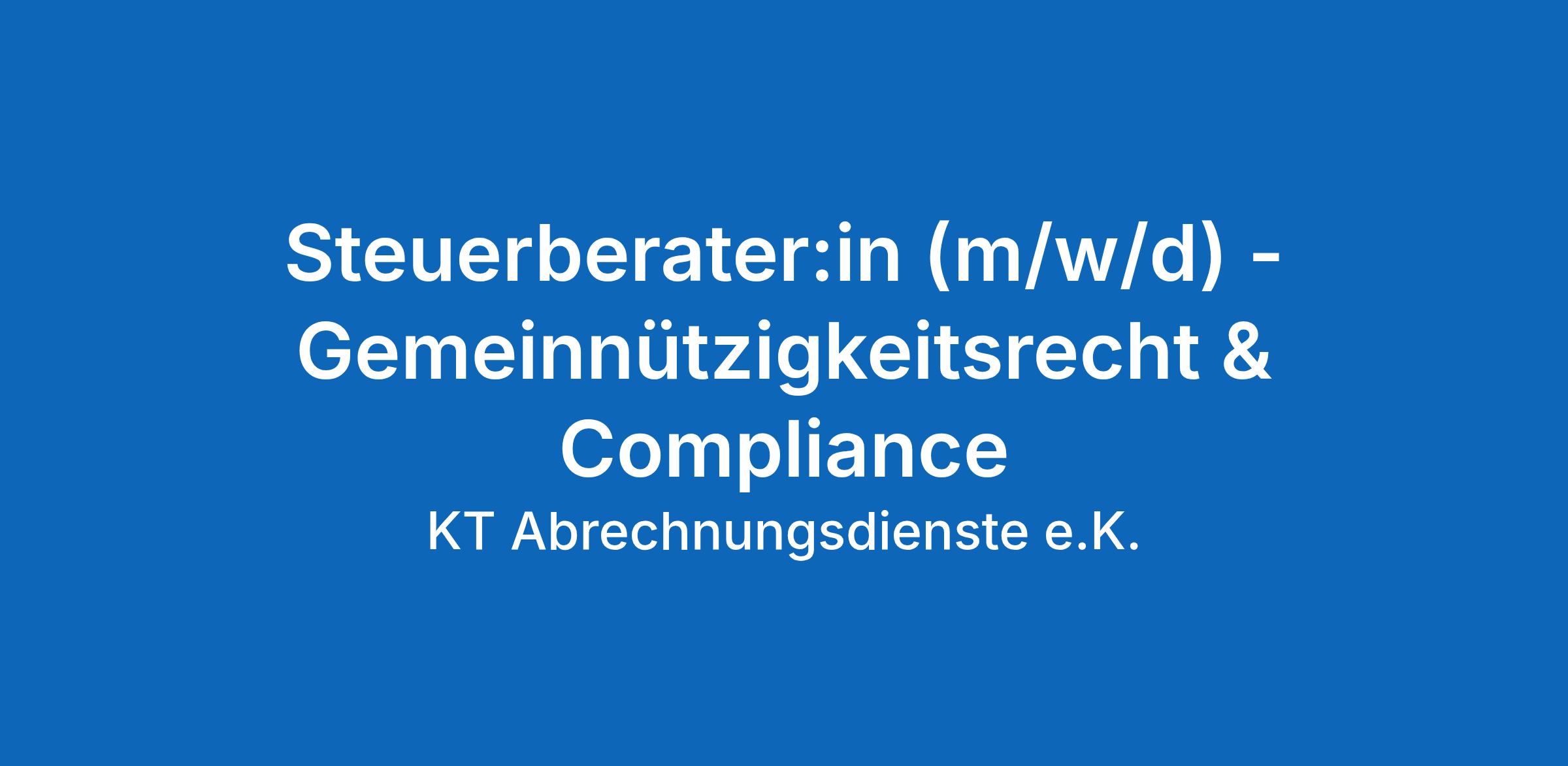 Steuerberater:in (m/w/d) – Gemeinnützigkeitsrecht & Compliance