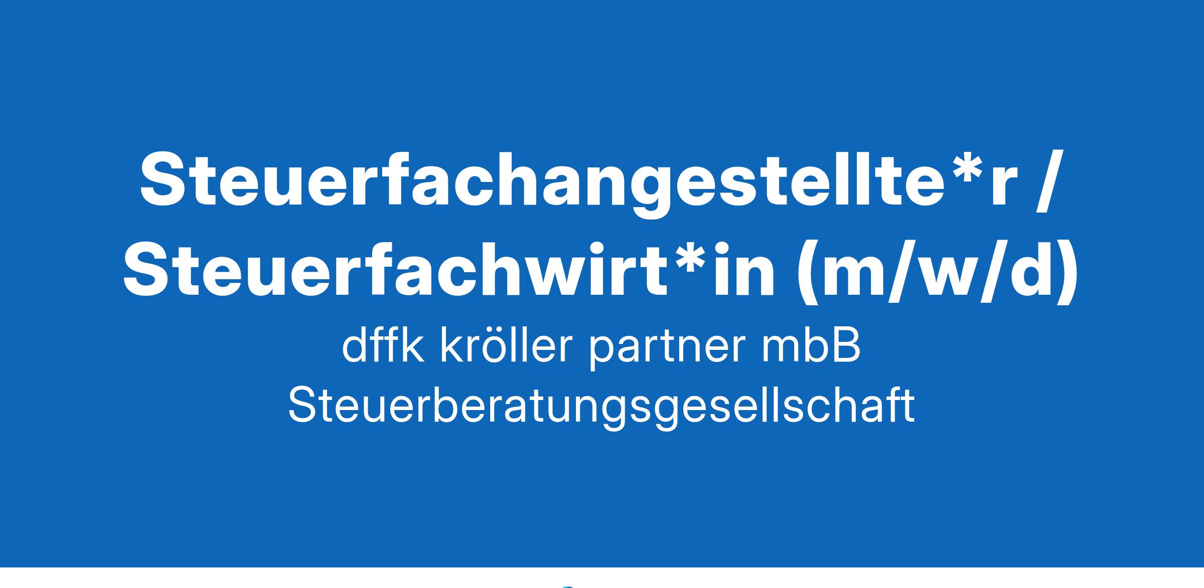 Steuerberatung auf den Punkt gebracht ! Steuerfachangestellte*r / Steuerfachwirt*in (m/w/d) in Voll- oder Teilzeit In unserer Kanzlei in schöner Lage im Stuttgarter Süden bieten wir einen interessanten, krisensicheren und konjunkturunabhängigen Vollzeit-Arbeitsplatz in der laufenden Mandatsbetreuung. Unsere Kanzlei Wir sind (k)eine ganz normale Steuerberatungsgesellschaft. Neben der klassischen Beratung des schwäbischen Mittelstands unterstützen wir auch andere Steuerberater in kniffligen Fällen. Dabei decken wir ein breites Spektrum ab. Kein Tag ist deshalb langweilig bei uns. Unsere Mandanten schätzen den direkten Draht zu uns. Unsere Mitarbeiter loben die familiäre Atmosphäre und den wertschätzenden Umgang untereinander. Unser Büro liegt im Grünen unterhalb der Karlshöhe. Öffentlich sind wir gut zu erreichen und in unserer Tiefgarage ist genügend Platz für alle, die mit dem Auto kommen wollen. Aufgaben, die Sie voranbringen Weitgehend digitalisierter Workflow (Digitale DATEV-Kanzlei) mit: Finanzbuchhaltung Erstellung von Einkommensteuererklärungen Mitwirkung bei der Erstellung von Jahresabschlüssen und betrieblichen Steuererklärungen Optional: Lohn- und Gehaltsabrechnung Ihr Profil Abgeschlossene Ausbildung zur Steuerfachangestellten (m/w/d), Steuerfachwirtin (m/w/d) oder Bilanzbuchhalterin (m/w/d) Engagement und Freude am Umgang mit Menschen und Zahlen Begeisterung für Digitalisierung und Innovationen in Verbindung mit fundierten DATEV- und MS-Office-Kenntnissen Idealerweise Erfahrung in Ihren Tätigkeitsgebieten Wir bieten Ihnen Einladendes Arbeitsumfeld mit flexibler Arbeitszeit und Möglichkeit der Home- Office-Nutzung und ggf. EDV-Einrichtung Home-Office-Arbeitsplatz Fester, eigener Arbeitsplatz mit modernster IT-Ausstattung Freundliche und teamorientierte Arbeitsatmosphäre mit kurzen Entscheidungswegen und fachlicher Unterstützung Abwechslungsreiche und interessante Tätigkeit Sehr gute öffentliche Erreichbarkeit und eigene Pkw-Stellplätze Attraktive Vergütung Unbefristeter Arbeitsvertrag Regelmäßige Fortbildungen und Ausbau der Tätigkeitsgebiete durch gezielte Weiterbildung Kostenfreie Getränke und Obst Zuschuss zu den Fahrtkosten Ist das die Herausforderung, die Sie suchen? Dann freuen wir uns auf Ihre vollständigen Bewerbungsunterlagen unter Angabe Ihrer Gehaltsvorstellungen und Ihrem frühestmöglichen Eintrittstermin, idealerweise per Mail an: dffk | kröller + partner mbB Steuerberatungsgesellschaft Ines Ferger Telefon: +49 711 66 48 23 - 0 E-Mail: jobs@dffk.de Internet: www.dffk.de dffk | kröller + partner mbB Steuerberatungsgesellschaft • Schickhardtstraße 57 • 70199 Stuttgart