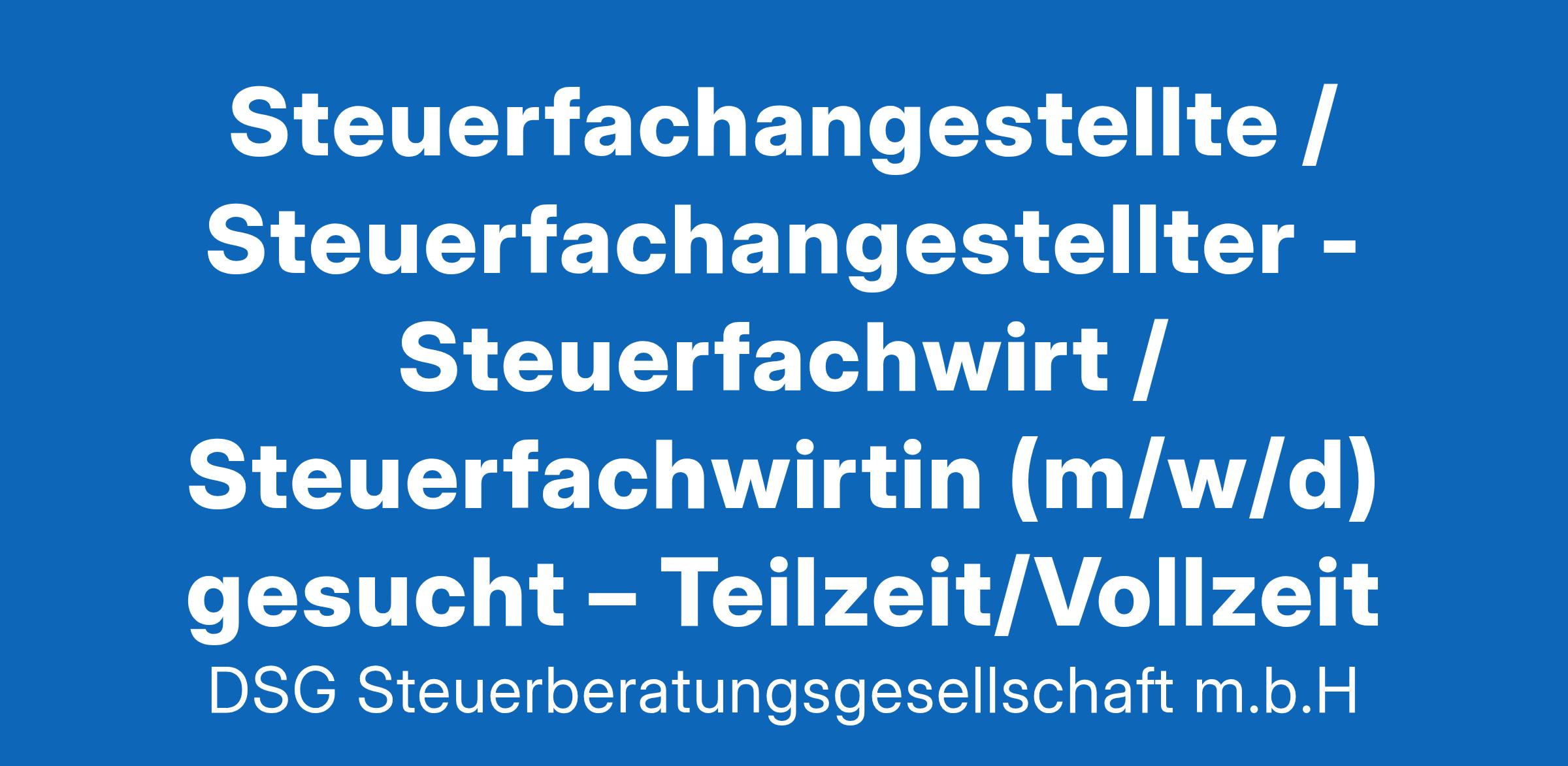 Das Papier hat ausgedient. Wir, die DSG Steuerberatungsgesellschaft, nutzen neueste Technologien und so gehört die digitale Beleggutarchivierung einschließlich OCR Volltextsuche und Umsatzsteuervoranmeldung bis hin zur Bilanz längst zu unserem Leistungsumfang. Unser Fokus liegt auf innovativen Lösungen, erstklassigem Service und einer positiven Arbeitsatmosphäre, die Eigenverantwortung und Weiterentwicklung fördert.Die AufgabenErstellung und Bearbeitung von Jahresabschlüssen und Steuererklärungen für UnternehmenUnterstützung bei der steuerlichen Beratung und Korrespondenz mit FinanzämternSonstige Tätigkeiten einer SteuerberatungsgesellschaftDas ProfilAbgeschlossene Ausbildung als Steuerfachangestellte/r, Steuerfachwirt/in oder vergleichbare Qualifikation Idealerweise erste Berufserfahrung (aber auch Berufseinsteiger sind willkommen)Interesse an digitalen ArbeitsprozessenStrukturierte und eigenständige ArbeitsweiseTeamgeist, Kommunikationsstärke und Freude am Umgang mit MandantenWir bietenGute Sozialleistungen und ein überdurchschnittliches Gehaltkollegiale Arbeitsatmosphäre mit flachen Hierarchienschnelle EntscheidungswegeZentrale Lage (zu Fuß erreichbare Innenstadt)kostenfreier Parkplatzkostenlose GetränkeBetriebliche WeiterbildungFlexible Arbeitszeiten13. MonatsgehaltFahrtkostenzuschüsseJobradKlimatisierte BüroräumeUrlaubs/WeihnachtsgeldGehalt (je nach Qualifikation) 2.500€ - 4.750€ p.M.Flexible Arbeitszeiten im Gleitzeitmodell und Homeoffice nach Einarbeitung möglichUrlaubsanspruch: 30 TageBewerben Sie sich jetzt!Senden Sie Ihre Bewerbung per E-Mail an:Herr Einhell