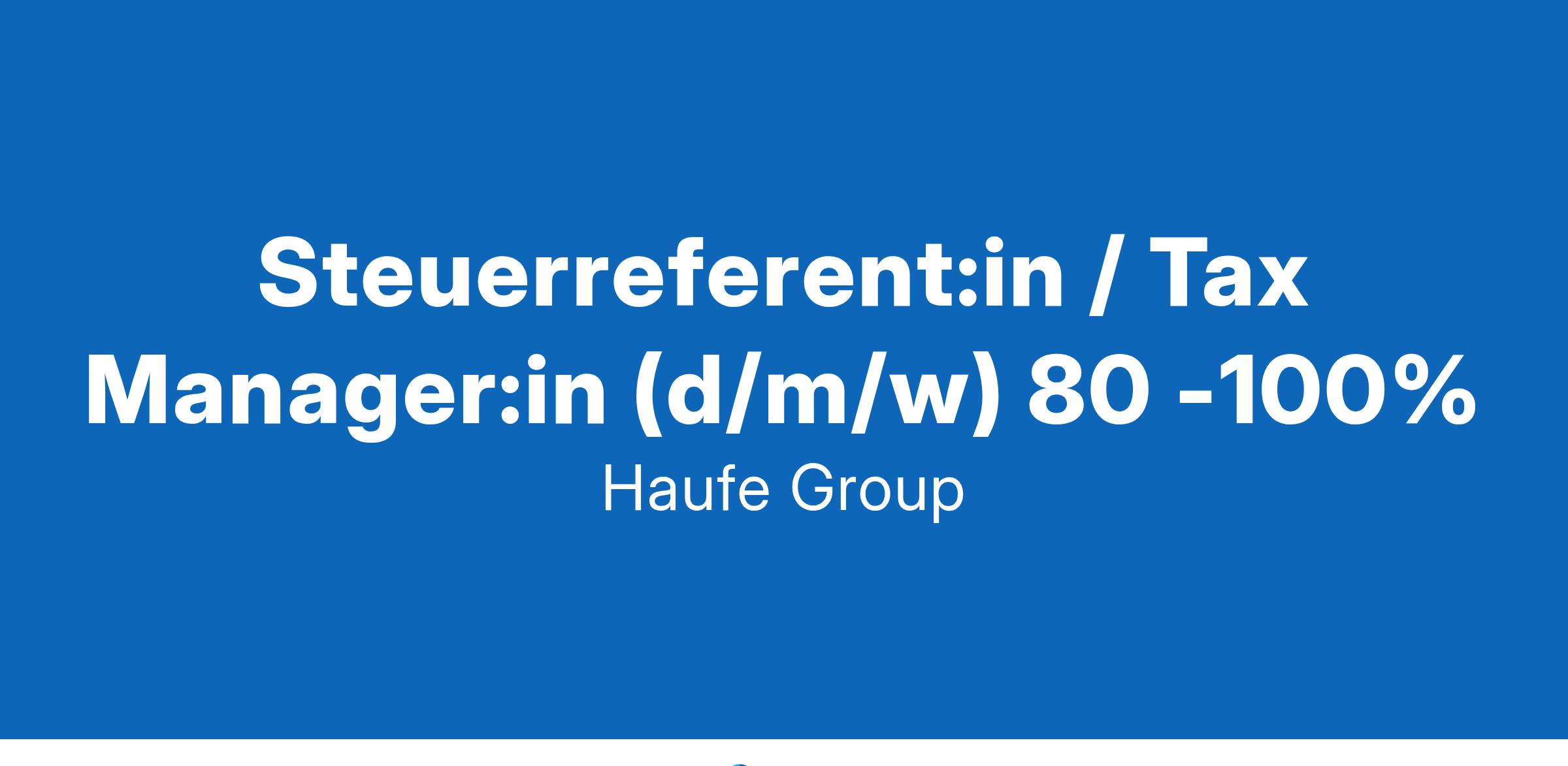 Steuerreferent:in / Tax Manager:in (d/m/w) 80 -100%