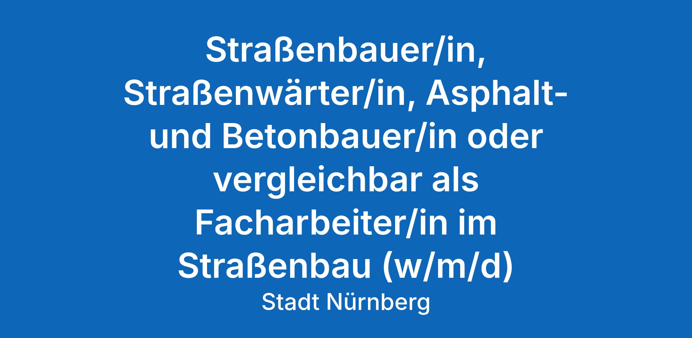 Straßenbauer/in, Straßenwärter/in, Asphalt- und Betonbauer/in oder vergleichbar als Facharbeiter/in im Straßenbau (w/m/d)