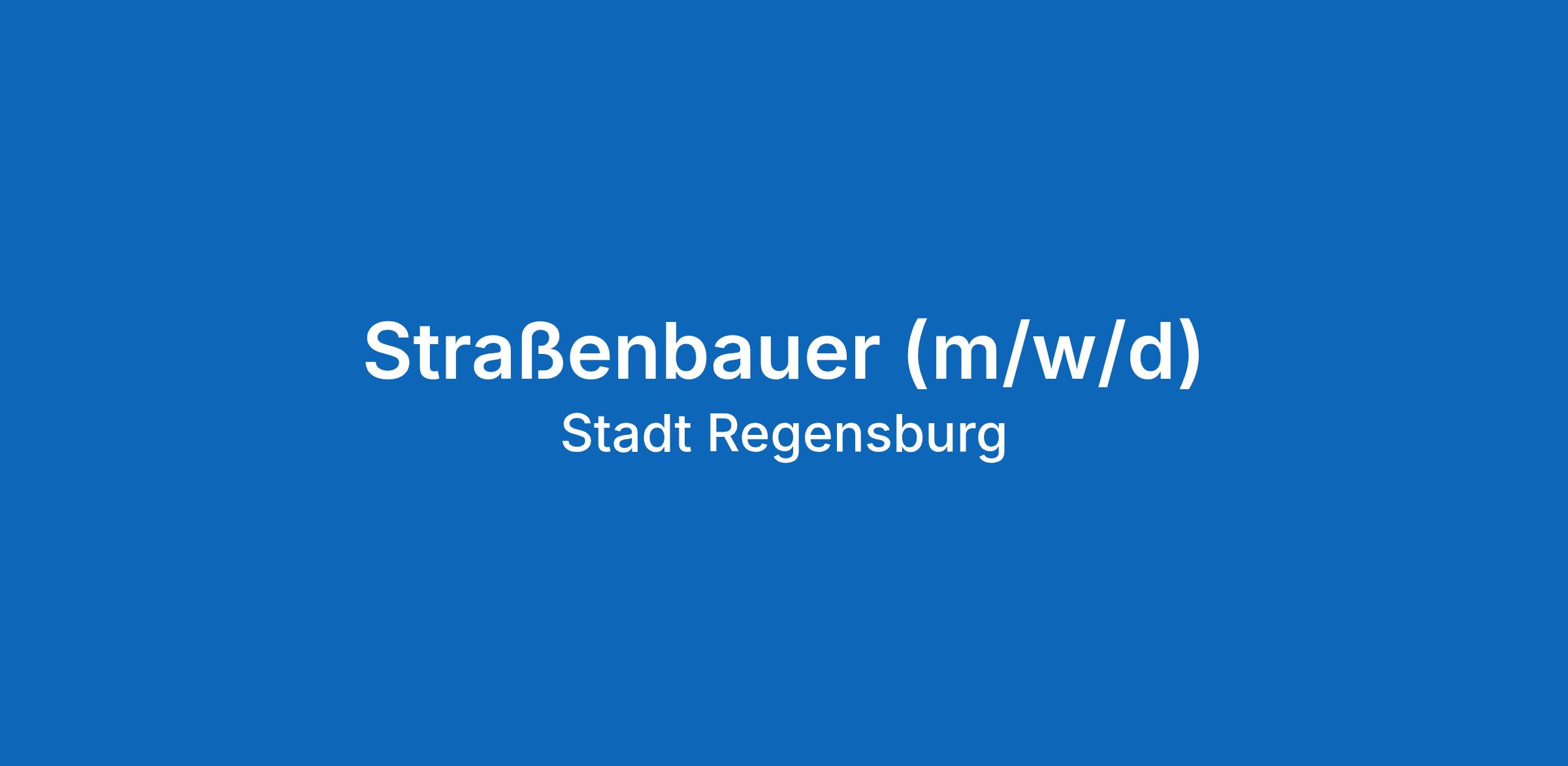 Gemeinsam mit der Stadt Regensburg die Zukunft gestalten! Wir suchen für das Tiefbauamt mehrere Straßenbauer /-innen (m/w/d) in verschiedenen Straßenunterhaltsbezirken.