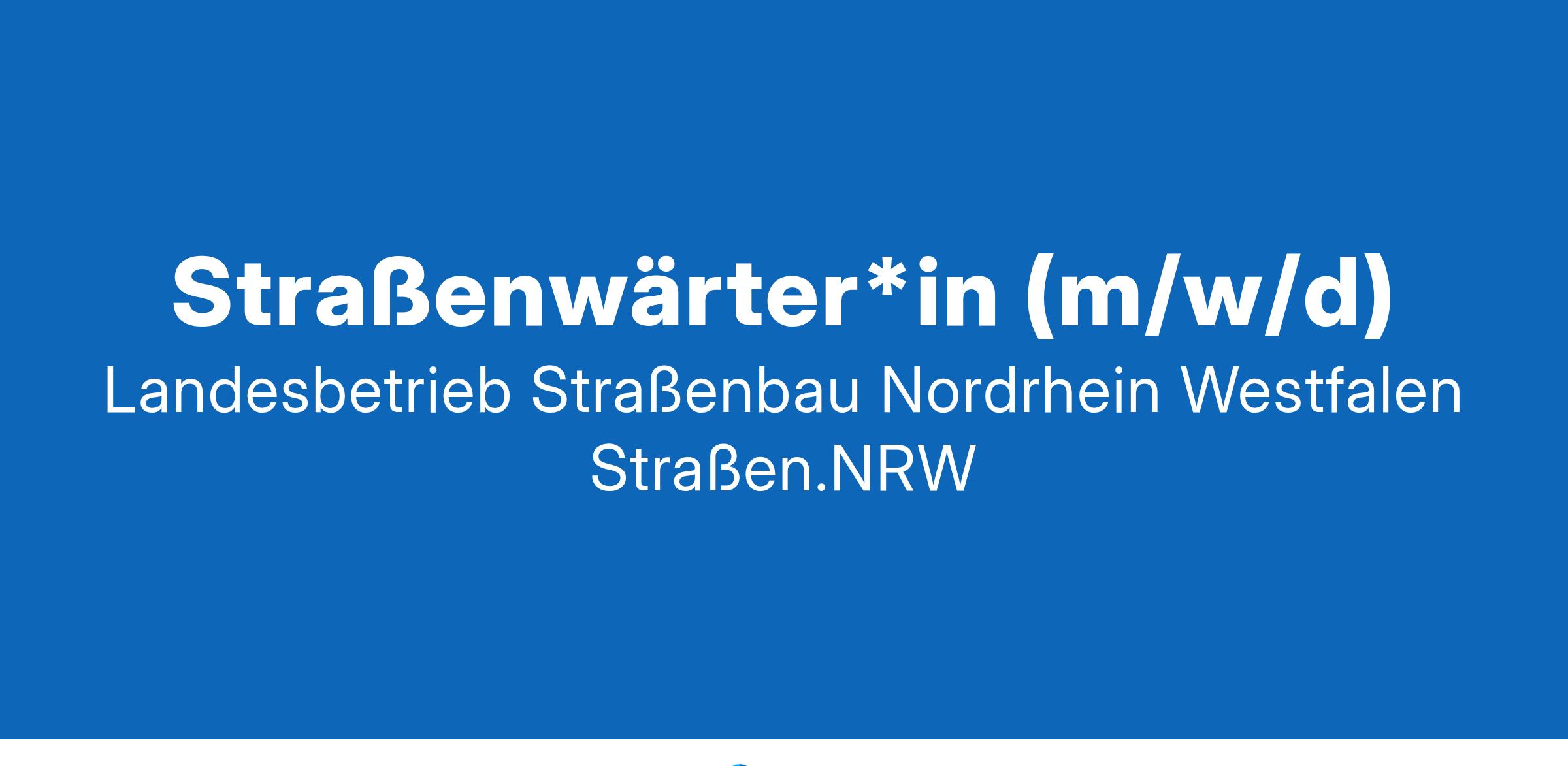 Der Landesbetrieb Straßenbau Nordrhein-Westfalen (Straßen.NRW) sucht zum nächstmöglichen Zeitpunkt für den Standort Region II NL Niederrhein mit Einsatzort SM Kleve eine/n Straßenwärter*in (m/w/d).
