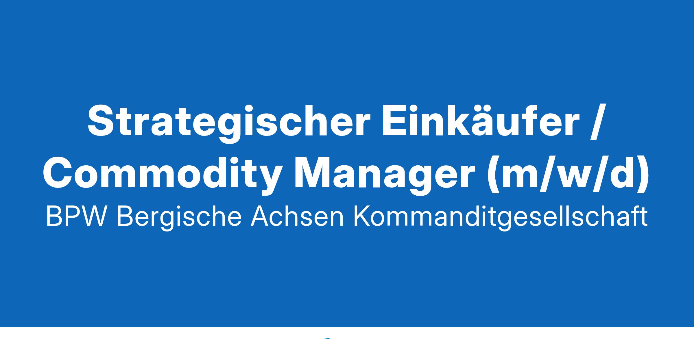 BPW ist der verlässliche Mobilitäts- und Systempartner für die Transportindustrie. Die Technologien und Dienstleistungen der BPW Gruppe schaffen höchste Transparenz in den Verlade- und Transportprozessen und ermöglichen Fahrzeugbetreibern ein effizientes Flottenmanagement. Die inhabergeführte Unternehmensgruppe mit Sitz in Wiehl (nahe Köln) beschäftigt weltweit rund 6.800 Mitarbeitende. Strategischer Einkäufer / Commodity Manager (m/w/d) Ihre Aufgaben Sie sind zuständig für die Durchführung globaler Beschaffungsmarktanalysen und Umsetzung der erarbeiteten Beschaffungs- und Materialgruppenstrategien Sie analysieren die unternehmensweiten Bedarfe und bündeln sämtliche Beschaffungsaktivitäten Sie verantworten den Auf- und Ausbau langfristiger Markt- und Netzwerkkontakte, sowie die Pflege der Lieferantenbeziehungen Sie erarbeiten Kostensenkungsmaßnahmen und Prozessverbesserungen zusammen mit unseren Lieferanten Sie sind zuständig für den Technology-Push von Produkt- und Prozessideen als Unterstützung für Projekte der unterschiedlichen Business-Units Sie qualifizieren Lieferanten und Produkte bis hin zur robusten Serienreife gemäß VDA Ihr Profil Sie verfügen über ein erfolgreich abgeschlossenes Studium in Wirtschaftsingenieurwesen oder Maschinenbau Sie besitzen eine umfangreiche Erfahrung im strategischen Einkauf für Kaltfließpressteile Sie haben technisches Know-How zu Werkstoffen und Fertigungsprozessen Sie besitzen eine analytische, konzeptionelle und zielstrebige Arbeitsweise sowie hohe Problemlösungskompetenz Sie bringen fundierte Erfahrungen im Projektmanagement und in der Lieferantenqualifizierung mit Sie verfügen über verhandlungssichere Englischkenntnisse in Wort und Schrift und der souveräne Umgang mit den MS-Office-Produkten und SAP ist für Sie selbstverständlich Idealerweise verfügen Sie über Zusatzqualifikationen im Bereich Kostenanalyse, Qualität oder Logistik Sie haben die grundsätzliche Bereitschaft zu Dienstreisen (ca. 15%) Ihre Vorteile Zufriedene Mitarbeiter/innen sind die beste Voraussetzung für zufriedene Kunden. Wir bieten das Arbeitsumfeld dafür. Sie profitieren von einer gelebten Vertrauensarbeitszeit, einer attraktiven betrieblichen Altersvorsorge, individueller Gesundheitsvorsorge, einem umfangreichen Sportprogramm mit firmeneigenem Fitnessstudio, eigenem Betriebsrestaurant und einer individuellen Personalentwicklung. Das macht uns zu einem der Top Arbeitgeber. Ausgestattet mit großem Handlungsspielraum arbeiten Sie in einem hochmotivierten interdisziplinären Team in einem modernen und kreativen Arbeitsumfeld. Die Benefits auf einen Blick Interesse geweckt? Dann freuen wir uns auf Ihre Bewerbung über unser Karriereportal unter Angabe Ihrer Gehaltsvorstellung und Ihres frühestmöglichen Eintrittstermins. Haben Sie noch Fragen? Bei Fragen hilft Ihnen gerne Holger Schneider unter der Telefonnummer 02262 / 78-1742 weiter!