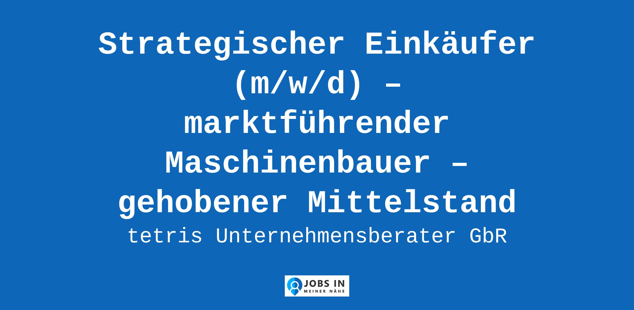 Unser Klient ist ein mittelständisch geprägtes, innovatives und sehr erfolgreiches Unternehmen aus dem Bereich Maschinenbau. Als Teil einer italienischen Unternehmensgruppe ist das Unternehmen mit seinen 700 Mitarbeitern einer der weltweit führenden Anbieter von Maschinen für die Bearbeitung von ... Einkauf Einkäufer Purchaser Purchasing Beschaffung Strategie Lieferantenmanagement Unternehmenserfolg;Einkaufsstrategie;Führung;Die Materialien;Entwicklung;Sourcing;Beschaffung;Konzeptentwicklung;Praxisorientiert;Einkaufscontrolling;Basisentwicklung;Vertragsverhandlung;Englisch;Deutsch;Technologie-KnowHow;Verantwortung;Kommunikation;Preisreduzierung Original Stellenanzeige auf StepStone.de – Jetzt Jobagent bei StepStone einrichten und Traumjob finden! https://bit.ly/2KOagYD Mehr Informationen zu Arbeitgebern, Gehaltsdaten und Karrieretipps finden Sie auf StepStone.de