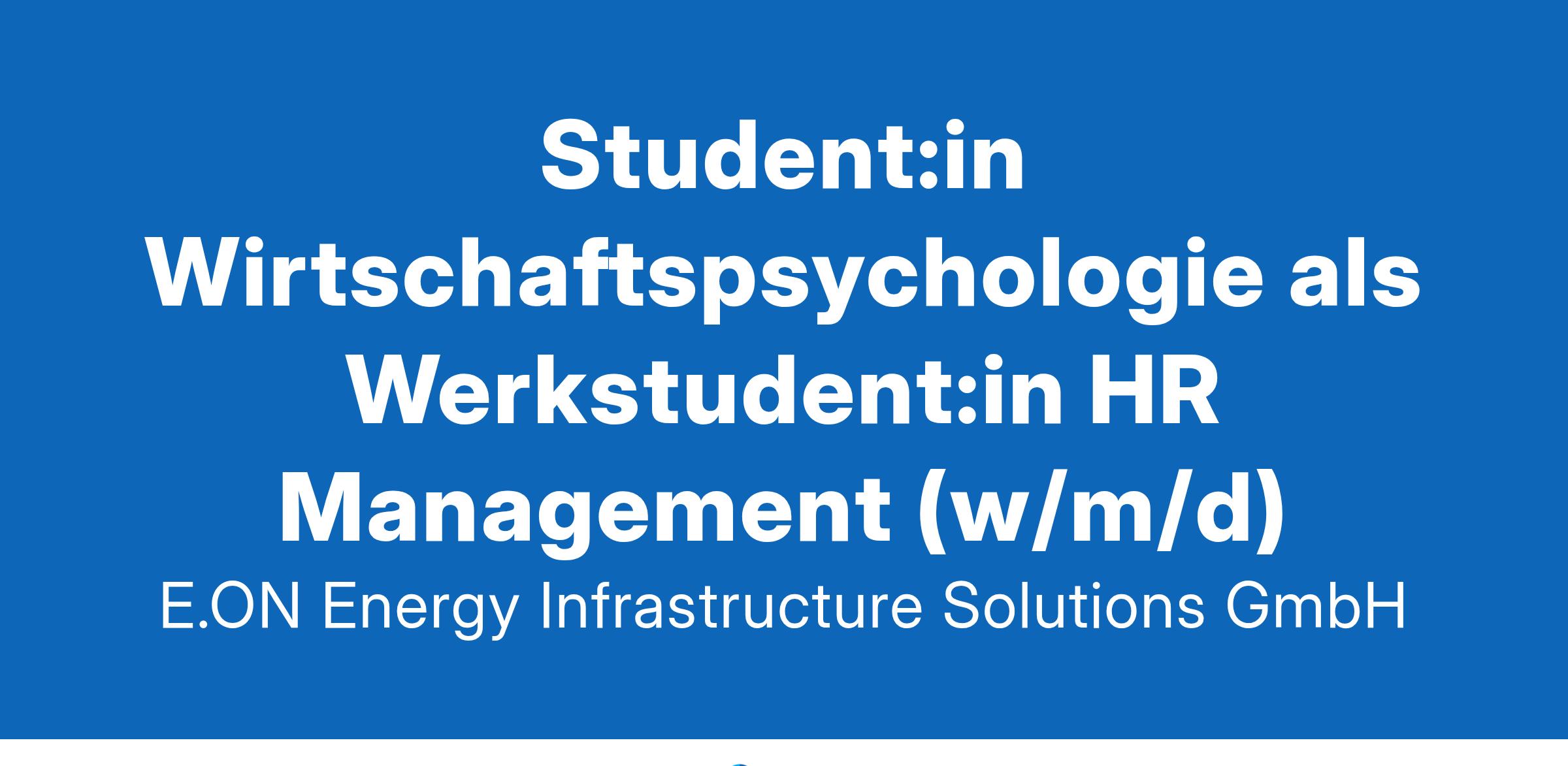 E.ON Energy Infrastructure Solutions GmbHDie E.ON Energy Infrastructure Solutions GmbH (EIS) ist ein multinationaler Integrator von Managed-Energy-Lösungen für B2B-Kunden und den öffentlichen Sektor. Wir ermöglichen unseren Kunden lebenslange Energie- und Betriebskosteneinsparungen durch die Planung, den Bau, die Finanzierung, den Betrieb und die Optimierung von Energieerzeugungs- und Energiemanagementsystemen in den Anlagen unserer Kunden. Bei E.ON zählt Vielfalt. Wir heißen alle Menschen willkommen und sind überzeugt, dass Unterschiede uns stärker machen. Werde Teil unserer inklusiven und vielfältigen Unternehmenskultur! Zur Verstärkung unseres Teams der E.ON Energy Infrastructure Solutions GmbH suchen wir zum nächstmöglichen Zeitpunkt eine/n Werkstudent:in Human Resources Management (w/m/d). Solltest du interessiert sein, bewirb dich gleich online.Deine AufgabenDu unterstützt das Team im operativen Personalmanagement (z.B. bei der Umsetzung personeller Einzelmaßnahmen)Du wirkst im Einstellungsprozess, insbesondere durch die Erstellung und den Versand von Vertragsdokumenten sowie beim Onboarding neuer Mitarbeiter mitDu erledigst administrative Aufgaben zuverlässig und selbstständig (z.B. Erstellung von Zeugnissen und Bescheinigungen)Du agierst bei abrechnungsrelevanten Prozessen als Schnittstelle zwischen dem lokalen HR-Team und der GehaltsabrechnungDu unterstützt die HR Business Partner bei Ad-hoc Anfragen und ProjektenDu hilfst bei der Weiterentwicklung unserer internen Prozesse mitDein ProfilDu absolvierst ein Studium der Wirtschaftswissenschaften, Wirtschaftspsychologie oder vergleichbar - idealerweise mit Schwerpunkt PersonalwesenDu konntest bereits erste praktische Erfahrungen im HR-Bereich sammelnDu besitzt sehr gute Deutsch- und EnglischkenntnisseDu kannst sicher mit allen gängigen MS-Office Anwendungen umgehenDu bist in der Lage selbstständig, strukturiert und proaktiv zu arbeiten und bist ein TeamplayerDu trittst sicher in der mündlichen und schriftlichen Kommunikation mit Mitarbeitern und Führungskräften aufDu bist 15-20 Stunden pro Woche verfügbar – in den Semesterferien besteht die Möglichkeit, auf bis zu 40 Stunden aufzustockenInklusionUns ist wichtig, Menschen mit Behinderung ein faires Bewerbungsverfahren zu ermöglichen, in dem sie ihr Bestes zeigen können. Daher wird unsere Schwerbehindertenvertretung frühzeitig in das Verfahren einbezogen. Bitte teile uns über das Bewerbungsformular mit, ob du technische oder organisatorische Anpassungen für das Bewerbungsverfahren benötigst. Wir stellen diese gern zur Verfügung.