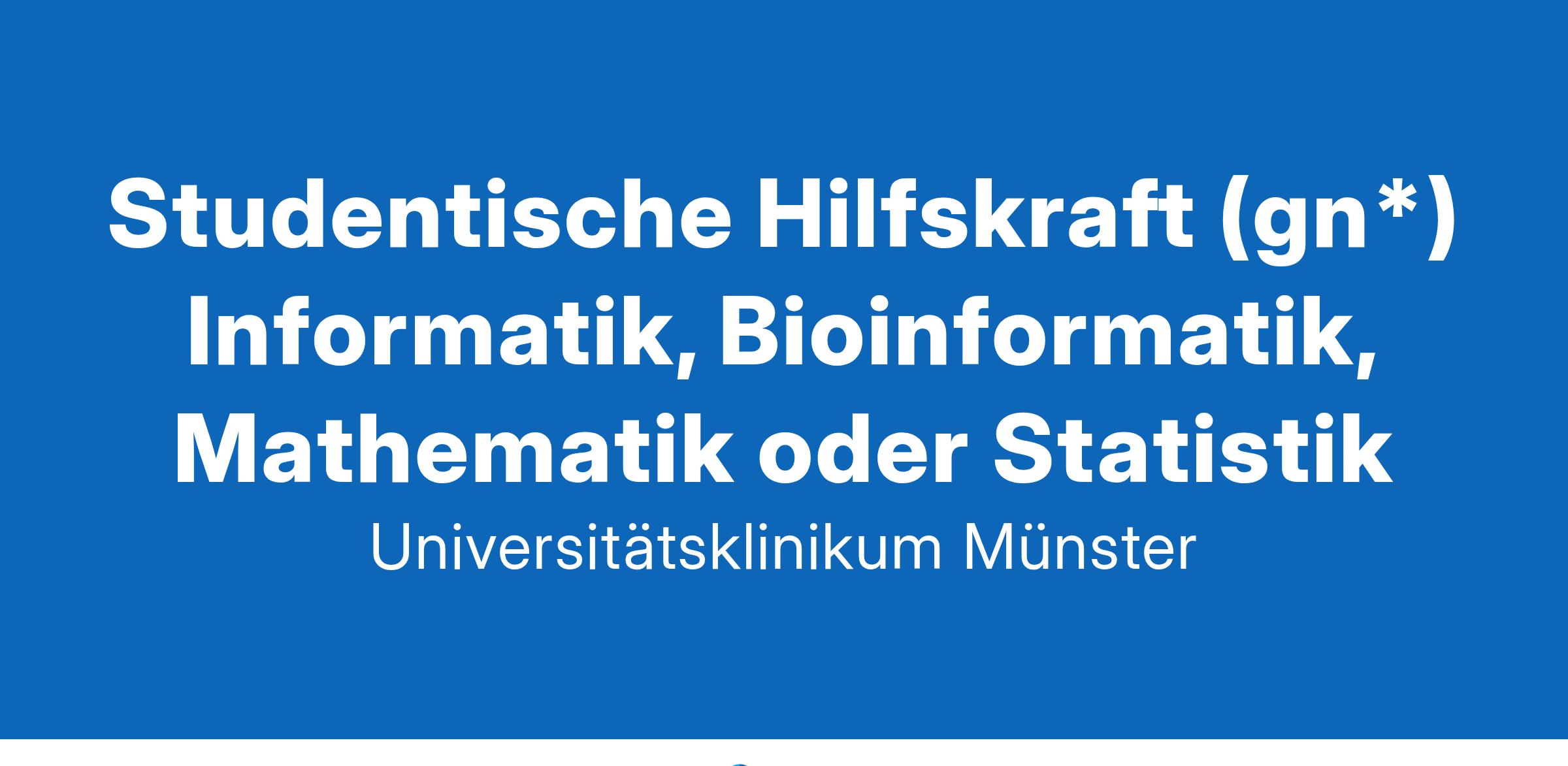Studentische Hilfskraft (gn*) Informatik, Bioinformatik, Mathematik oder Statistik Befristet bis 31.08.2025 | In Teilzeit mit 5 bis12 Wochenstunden (flexible Arbeitszeiten und Homeoffice nach Absprache) | Institut für Medizinische Informatik (IMI) | Kennziffer 10243 Wir sind das UKM. Wir haben einen klaren gesellschaftlichen Auftrag und mit der Verbindung von Krankenversorgung, Forschung und Lehre eine besondere gesellschaftliche Verantwortung. Während Deiner Tätigkeit neben dem Studium im Institut für Medizinische Informatik (IMI) profitierst Du von individueller Betreuung, attraktiven Rahmenbedingungen und vielen Möglichkeiten, zu wachsen und Dich einzubringen. Gemeinsam wollen wir erfolgreich in die Zukunft starten – am besten mit DIR! In Kooperation zwischen dem Institut für Medizinische Informatik und der Klinik für Kinder- und Jugendmedizin – Allgemeine Pädiatrie (Forschungsgruppe Dr. Dr. Alexander Busch) untersuchen wir im Rahmen des DFG-geförderten Projekts „Die postnatale Aktivierung der Hypothalamus-Hypophysen-Gonaden-Achse in Jungen und ihre Auswirkungen auf die Fortpflanzungsfunktion und reproduktive Gesundheit“ welchen Einfluss die Minipubertät sowohl im Gehirn als auch im Hoden auf das Fruchtbarkeitspotenzial hat. Dazu analysieren wir Daten aus Single-Cell-Experimenten (scRNA, scATAC). Des Weiteren werden Phäno- und Genotyp-Daten aus der UK-Biobank verarbeitet. Hier benötigen wir vor allem Unterstützung beim Data Cleaning und der Entwicklung eines Analysetools. VERANTWORTUNGSVOLLE AUFGABEN: Unterstützung bei bioinformatischen Analysen, z. B. Single-Cell-Analysen (ATAC, RNA) Unterstützung bei Datenanalysen der UK-Biobank Unterstützung bei der Entwicklung eines Analysetools ANFORDERUNGEN: Gültige Immatrikulation im Fach Informatik, Bioinformatik, Mathematik oder Statistik Gute Programmierkenntnisse (idealerweise R, alternativ Python oder Java) Gute Englischkenntnisse Kompetenzen, um schwierige Aufgaben durch eigene Ideen zu ergänzen und zu lösen Gutes Kommunikationsvermögen und Teamfähigkeit WIR BIETEN: Einen attraktiven Arbeitsplatz in einem aufgeschlossenen, interdisziplinären Team mit einer sehr guten Arbeitsatmosphäre Hochmoderne Forschungseinrichtung (z. B. High Performance Computing) Ein wichtiger Teil unserer Kultur ist der Austausch untereinander und das Networking; hierzu geben u. a. Team-Meetings, Social Events und digitale Formate ausreichend Gelegenheiten Eine grundlegende Einarbeitung Rückfragen an: Lynn Ogoniak, lynn.ogoniak[AT]uni-muenster.de Jetzt bewerben über unser Karriereportal bis zum 13.02.2025. BESTE BEDINGUNGEN: Abwechslungsreich Flexible Arbeitszeiten Relevante Berufserfahrung Attraktive Vergütung Vieles mehr ... Abwechslungsreich Flexible Arbeitszeiten Relevante Berufserfahrung Attraktive Vergütung Weitere Vorteile (*gn=geschlechtsneutral) Das UKM unterstützt die Vereinbarkeit von Beruf und Familie und ist daher als familienbewusstes Unternehmen zertifiziert. Es besteht grundsätzlich die Möglichkeit der Teilzeitbeschäftigung. Im Rahmen der gesetzlichen Vorschriften werden Frauen sowie Schwerbehinderte bei gleicher Eignung bevorzugt berücksichtigt. Aufgrund der gesetzlichen Vorgaben gemäß Masernschutzgesetz ist eine Tätigkeit bei uns nur mit vollständigem Impfschutz gegen Masern möglich. Universitätsklinikum Münster