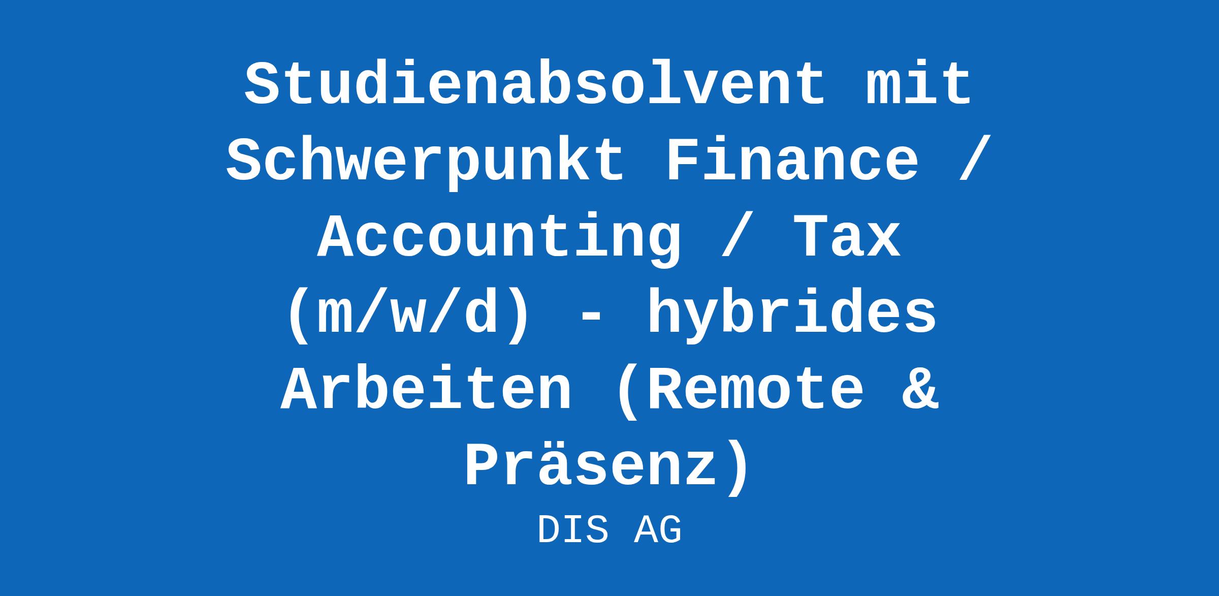 Studienabsolvent mit Schwerpunkt Finance / Accounting / Tax (m/w/d) - hybrides Arbeiten (Remote & Präsenz)