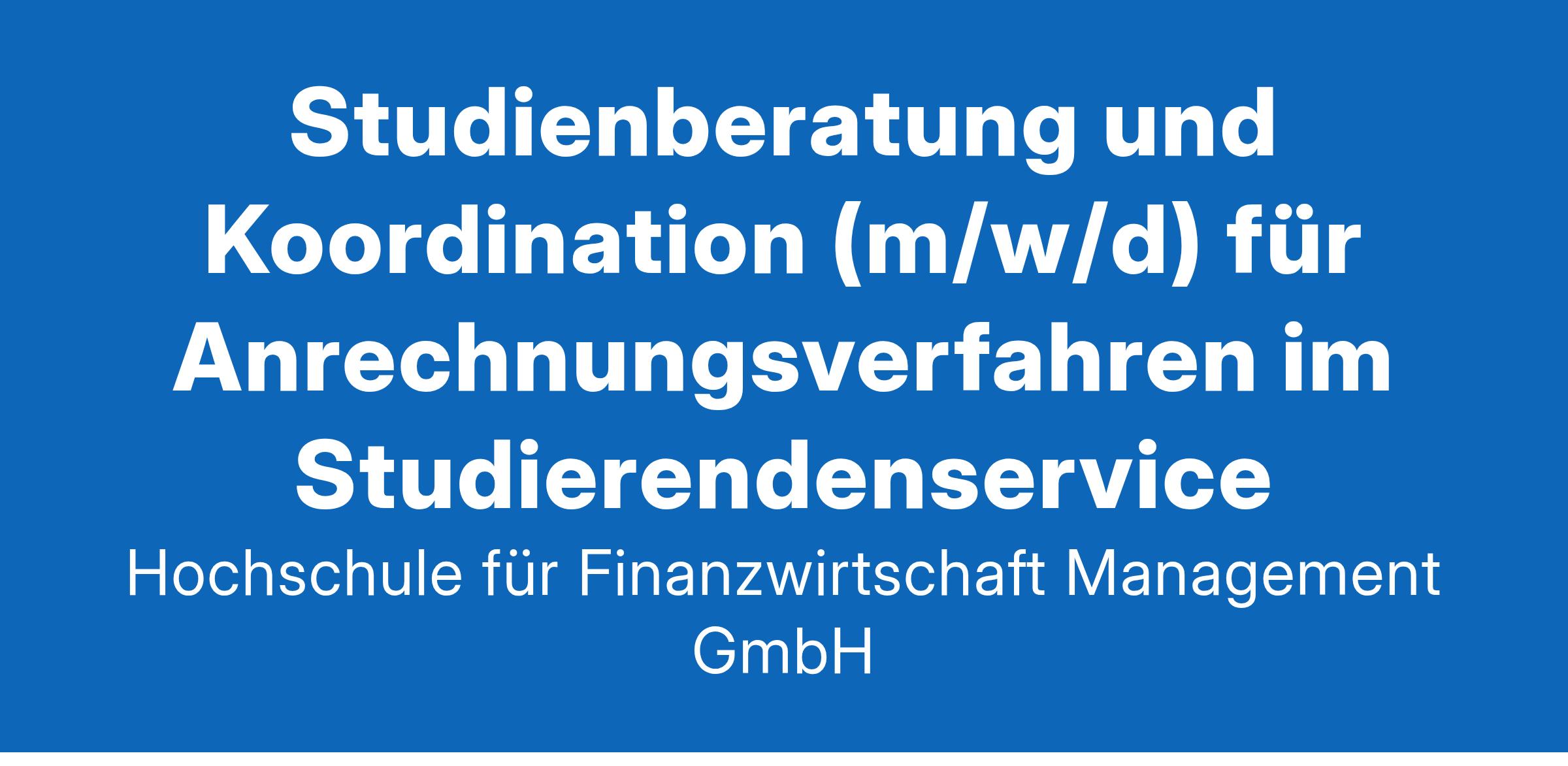 Gemeinsam. Weiter. Bilden. Das ist unsere Mission an der Hochschule für Finanzwirtschaft & Management. Mit der einzigartigen Kombination aus anwendungsorientierter Forschung, praxisbezogener Lehre und wissenschaftlichen Weiterbildungsangeboten bereiten wir rund 900 Studierende und jährlich ca. 1.500 Teilnehmende von Weiterbildungsveranstaltungen passgenau auf Tätigkeiten im Management von Finanzinstituten vor. Zusammen mit unseren über 80 Hochschulmitarbeitenden, 16 Professuren und 70 Lehrbeauftragten im Bachelor, Master- und MBA-Studium sowie weiteren 150 Dozierenden in der Weiterbildung gestalten Sie mit Ihren Fähigkeiten und Ideen die Zukunft aktiv mit. Gemeinsam bringen wir die Finanzbildung voran; machen Sie mit! Ab dem 1. Januar 2025 ist an der Hochschule für Finanzwirtschaft & Management die Position Studienberatung und Koordination (m/w/d) für Anrechnungsverfahren im Studierendenservice in Vollzeit (100 % der Regelarbeitszeit nach TVöD Bund) unbefristet zu besetzen. Wir bieten Ihnen eine verantwortungsvolle und abwechslungsreiche Tätigkeit in einer staatlich anerkannten Hochschule mit schlanken Hierarchien und einer wertschätzenden Unternehmenskultur, gleitende Arbeitszeiten und flexibles mobiles Arbeiten, eine attraktive Vergütung in Anlehnung an den TV-L, eine ergänzende Altersversorgung (ZVK) und vermögenswirksame Leistungen, 30 Tage Erholungsurlaub, Einen Zuschuss zum Deutschlandticket, Fortbildungen und Projekte zur individuellen beruflichen Weiterentwicklung, viele attraktive Angebote im Rahmen des betrieblichen Gesundheitsmanagements und einen Zuschuss zum gesunden Essen im Betriebsrestaurant sowie kostenlose Getränke. Ihr Aufgabenbereich: Beratung von Studierenden in individuellen Studien- und Prüfungsangelegenheiten, insb. Koordination und Bearbeitung von Anrechnungsanträgen aus der hochschulischen und beruflichen Bildung, individuelle Studienverlaufsplanberatung für die Studierenden unter Beachtung der anzurechnenden Module sowie Aufbereitung der Anträge, individuelle Anpassung von Studienverlaufsplänen z.B. bei nicht bestandenen Prüfungen, allgemeine Studienberatung von Interessierten und Studierenden zu den Bachelor- und Masterstudiengängen sowie Betreuung von Studierenden in Studienangelegenheiten, Ausfertigung von Studienverträgen und Studienverlaufsplänen, Bearbeitung von Urlaubssemesteranträgen und weiteren Dokumenten und Daten (Stammdaten, Bildungsurlaubsanträge, Exmatrikulationen etc.), sonstige allgemeine Administrations- bzw. Servicetätigkeiten. Ihr Profil: Sie passen zu uns, wenn Sie gerne im Team arbeiten und über einschlägige, praktische Kenntnisse im Hochschulbereich verfügen. Darüber hinaus bringen Sie folgende Kenntnisse und Eigenschaften mit: abgeschlossene kaufmännische oder verwaltungsfachliche Berufsausbildung, ausgezeichnete Kommunikationsfähigkeit und ein sicheres, gewandtes Auftreten, selbstständige, sorgfältige und dienstleistungsorientierte Arbeitsweise, erste Erfahrung in der Beratung von Studierenden wünschenswert, sehr guter Umgang mit den MS-Office-Programmen und hochschulinternen Programmen wie AcademyFIVE wünschenswert, betriebswirtschaftliche Kenntnisse oder Vorbildung von Vorteil. Die Bezahlung erfolgt in Anlehnung an den TV-L. Bei fachlichen Rückfragen zur ausgeschriebenen Position steht Ihnen Frau Pagano unter anne.pagano@s-hochschule.de gerne zur Verfügung. Sie fühlen sich angesprochen? Dann freuen wir uns über Ihre Bewerbung mit Anschreiben, Lebenslauf und relevanten Zeugnissen in einer Datei an: bewerbung@s-hochschule.de . Die Hochschule für Finanzwirtschaft & Management fördert die berufliche Gleichstellung und begrüßt es ausdrücklich, wenn Frauen sich bewerben. Schwerbehinderte Bewerberinnen und Bewerber werden bei gleicher fachlicher und persönlicher Eignung besonders berücksichtigt. Hinweise zum Datenschutz: Die Hochschule für Finanzwirtschaft & Management GmbH verarbeitet Ihre Daten zur Erfüllung ihrer Aufgaben nach der Datenschutzgrundverordnung. Weitere Informationen zur Verarbeitung und Ihren diesbezüglichen Rechten finden Sie unter: https://www.s-hochschule.de/news/stellenangebote.html Bonn, 12. Dezember 2024
